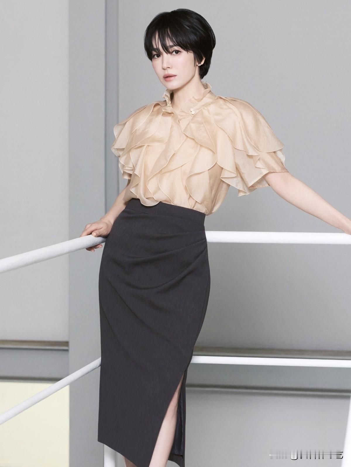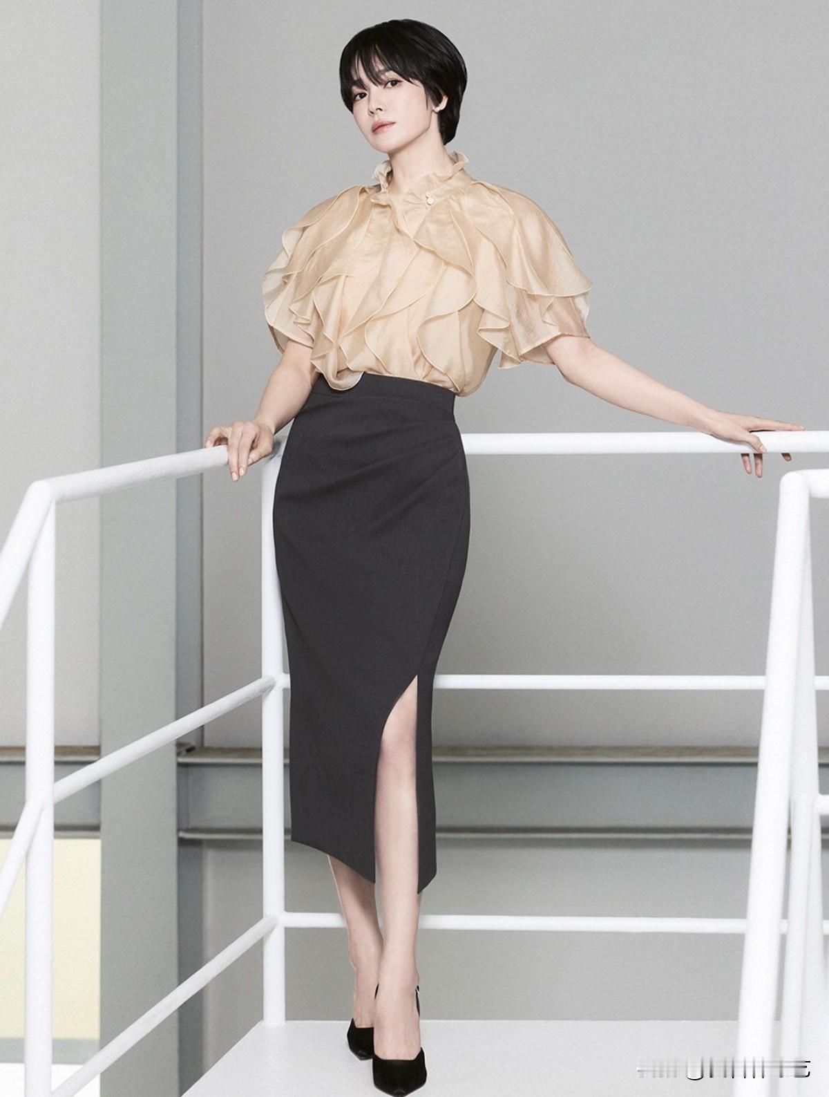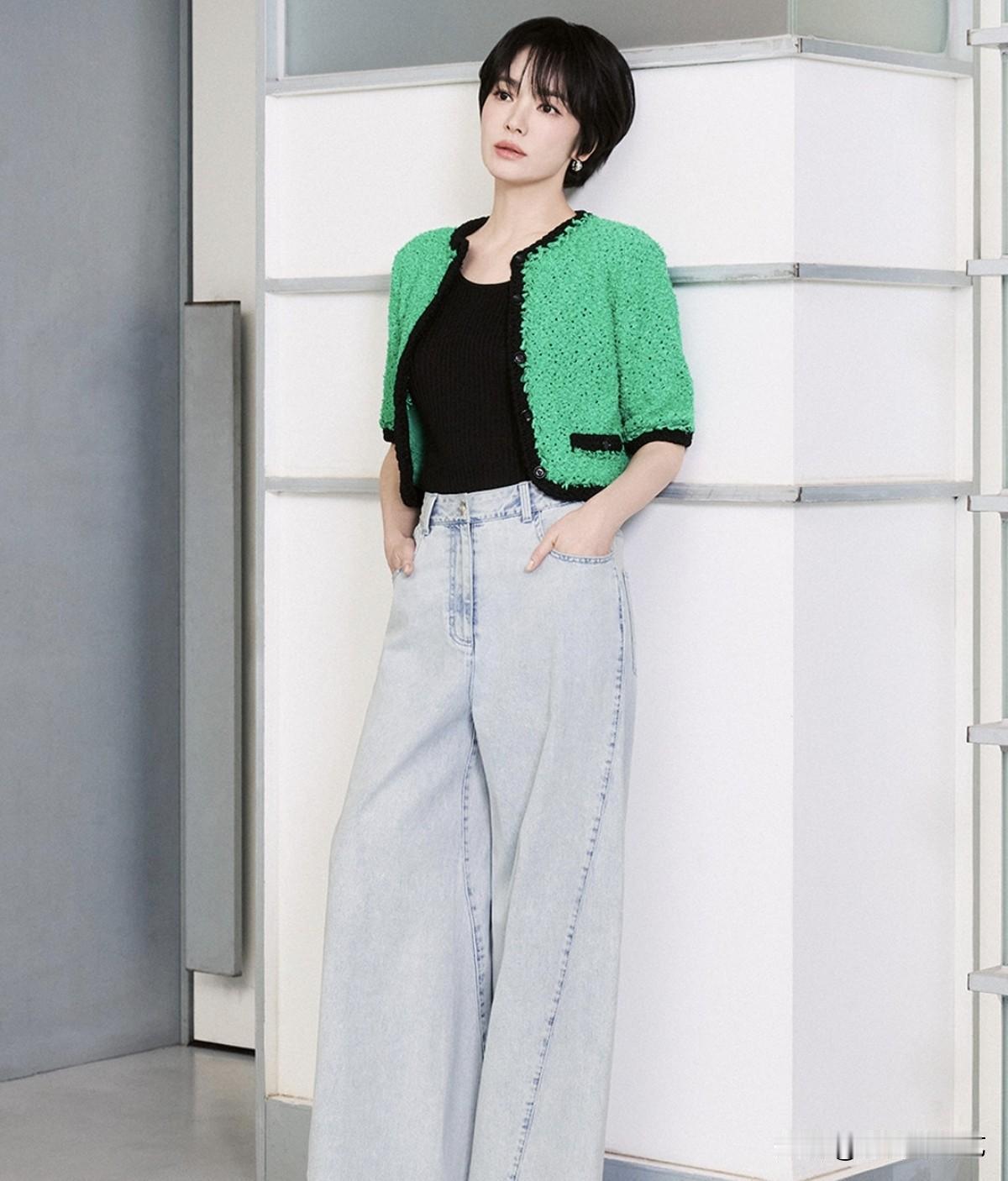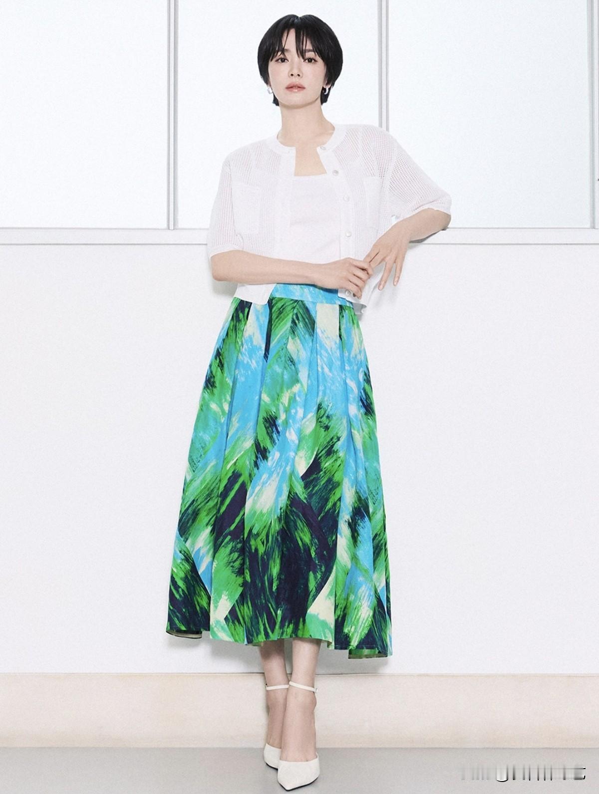 另外,宋慧乔利落背心长裤套装尽显干练都市气场,荷叶边衫裙穿搭明艳华贵氛围感十足,不对称针织上衣配阔腿裤低调尽显专属优雅风骨,另有绿开衫牛仔休闲随性造型、垂坠飘逸衫裙清爽灵动,多款风格尽数拿捏别样夏日魅力。