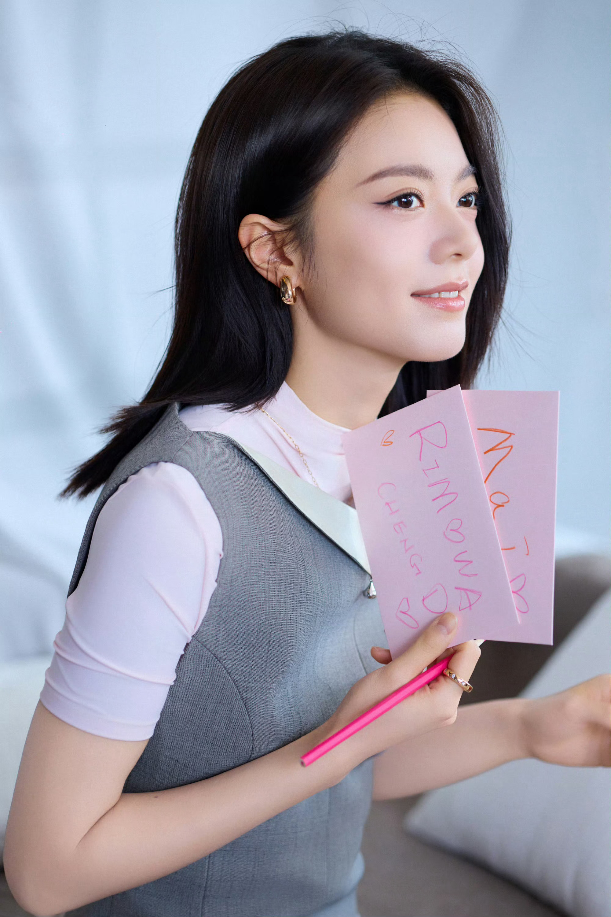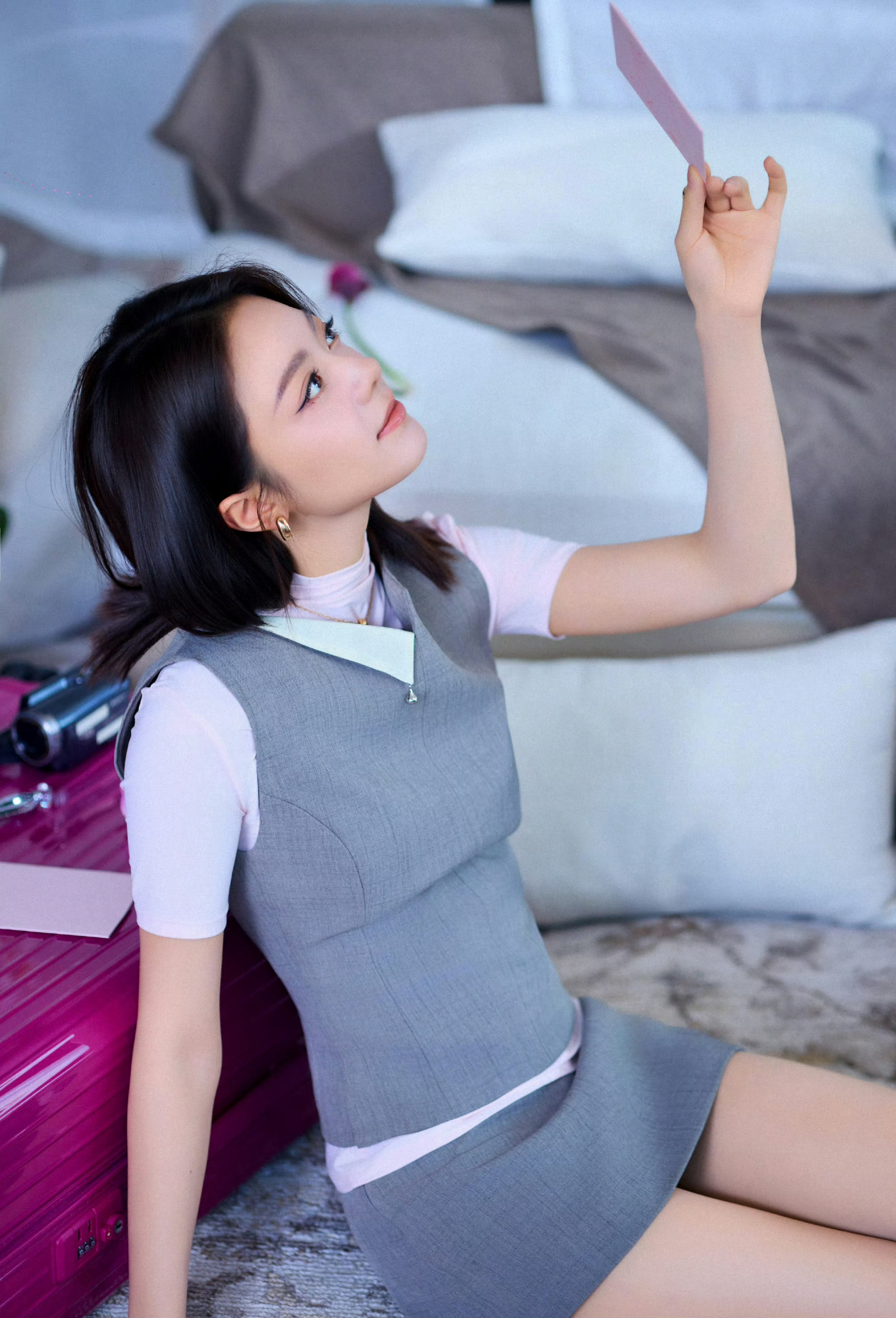 职场女强人内味儿有了赵今麦灰粉裙裤套装造型