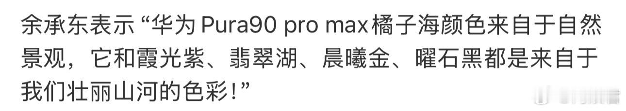 余承东回应Pura90橘子海配色余承东回应华为Pura90新出的橘子海配色,“橘