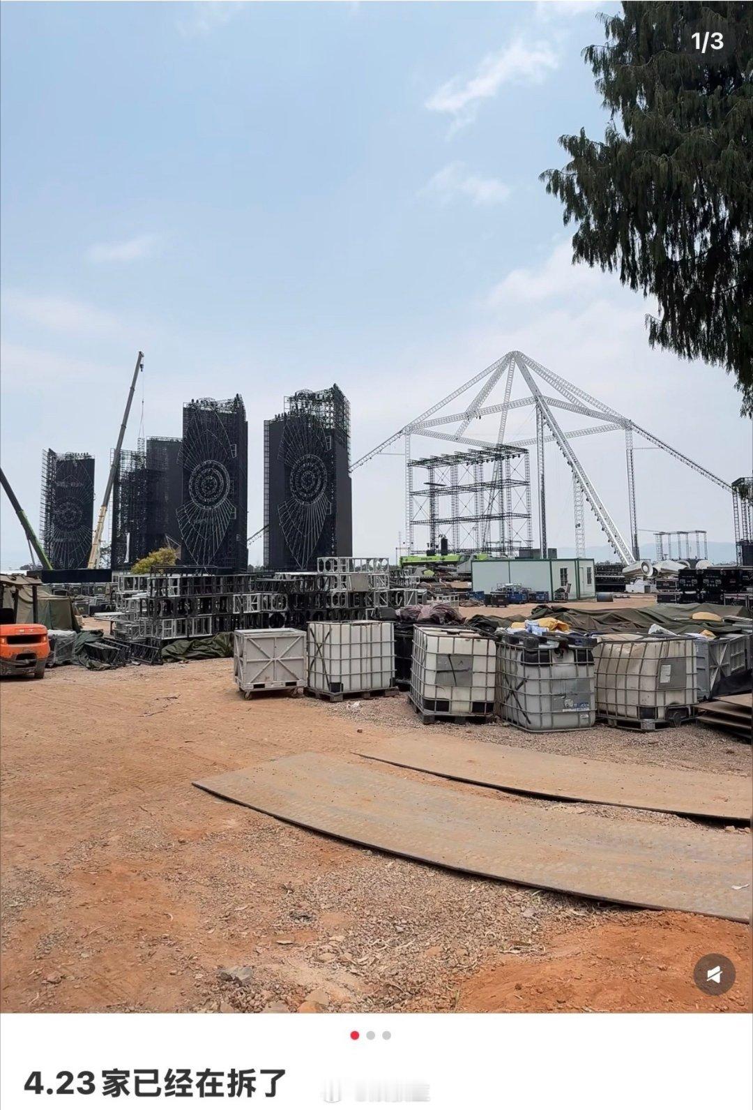 华晨宇演唱会场地开始拆了 太可惜了!五一抚仙湖火星乐园2.0演唱会突遭延期,耗时数月、耗资千万的巨型舞台,吊车进场、钢架拆解,曾经的火星基地瞬间变废墟。花花直播哽咽落泪,歌迷全勤预订泡汤,这波不可抗力太虐心。