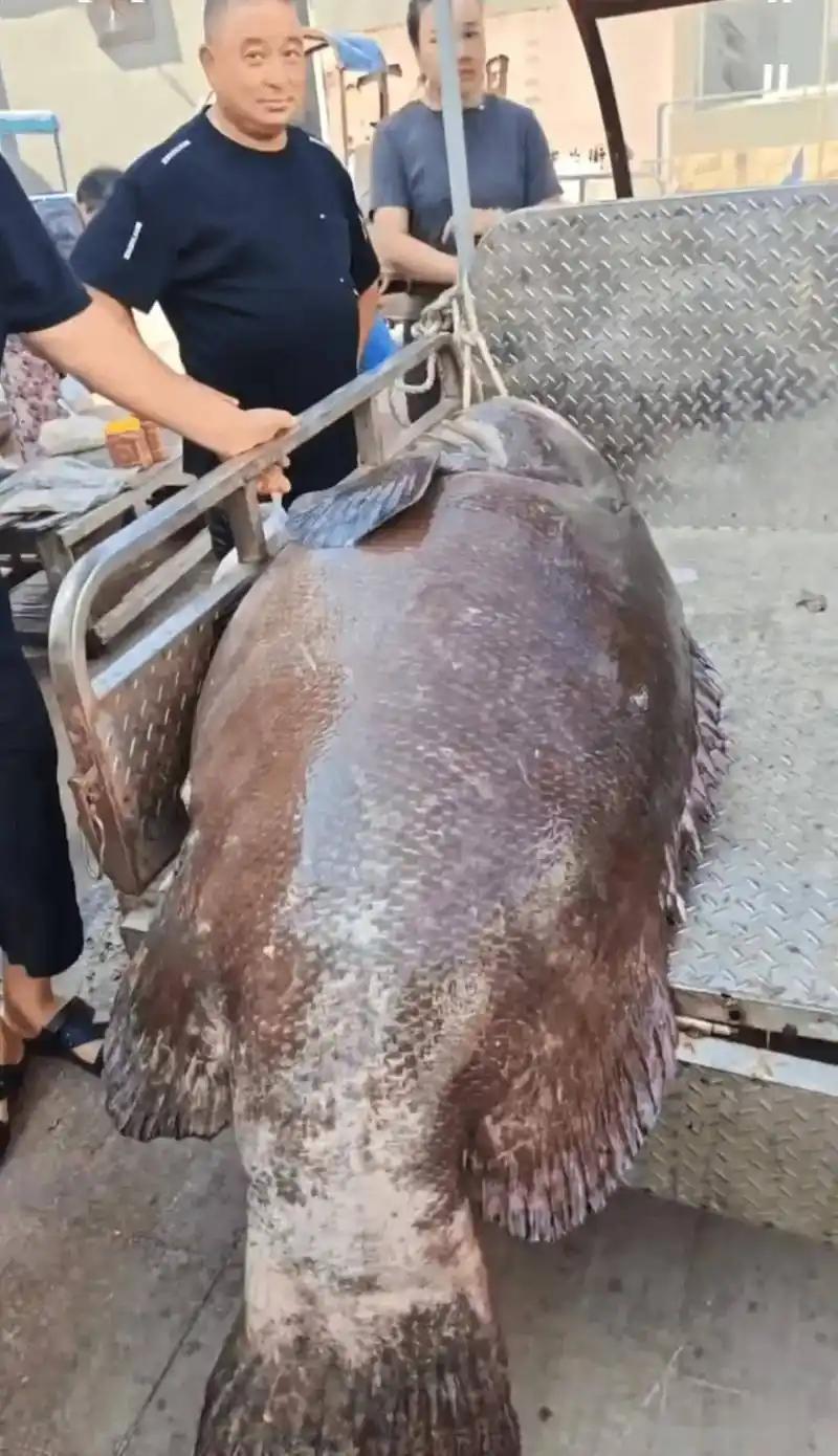 1.8米,重达215斤的大石斑鱼被宁波渔民在东海捕获!
