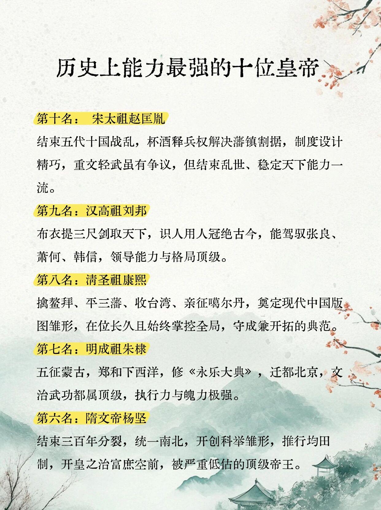 历史上能力最强的十位皇帝很难有统一答案,不过有几位确实相当耀眼。