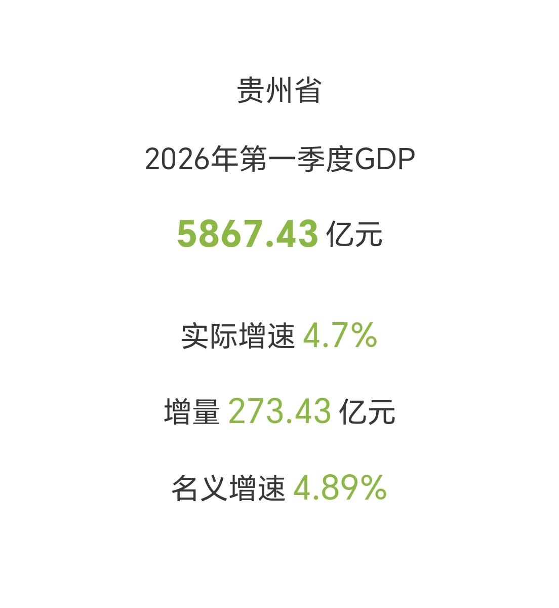 【2026年一季度,贵州省GDP超过5800亿元,增量超270亿元】