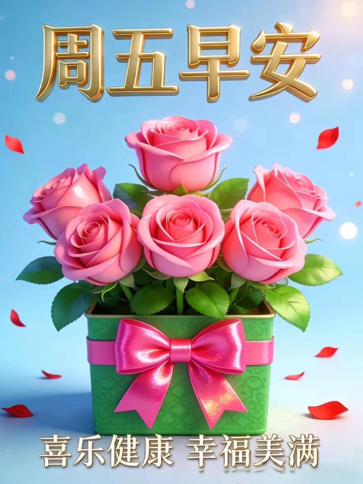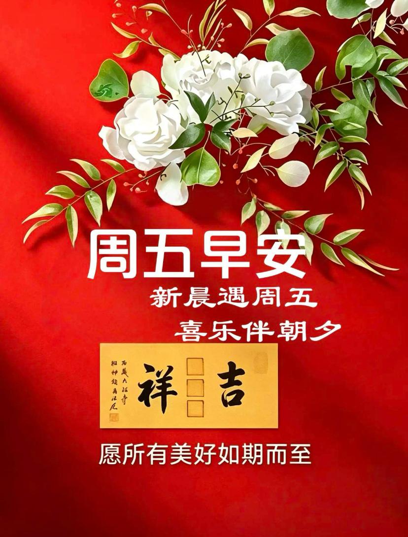 ☘️☀️晨风吹散薄雾,朝阳点亮人间,岁月往复,时光向前,唯有真挚情谊,愈久愈醇。人海浮沉,相遇是缘,相守是福,感恩生命中有彼此相伴。愿这清晨的祝福,陪你开启温柔一日,一生平安喜乐,一世健康安宁,和美时光常相伴,顺心如意伴你行,安然无恙护康健。早安吉祥!周五顺遂!