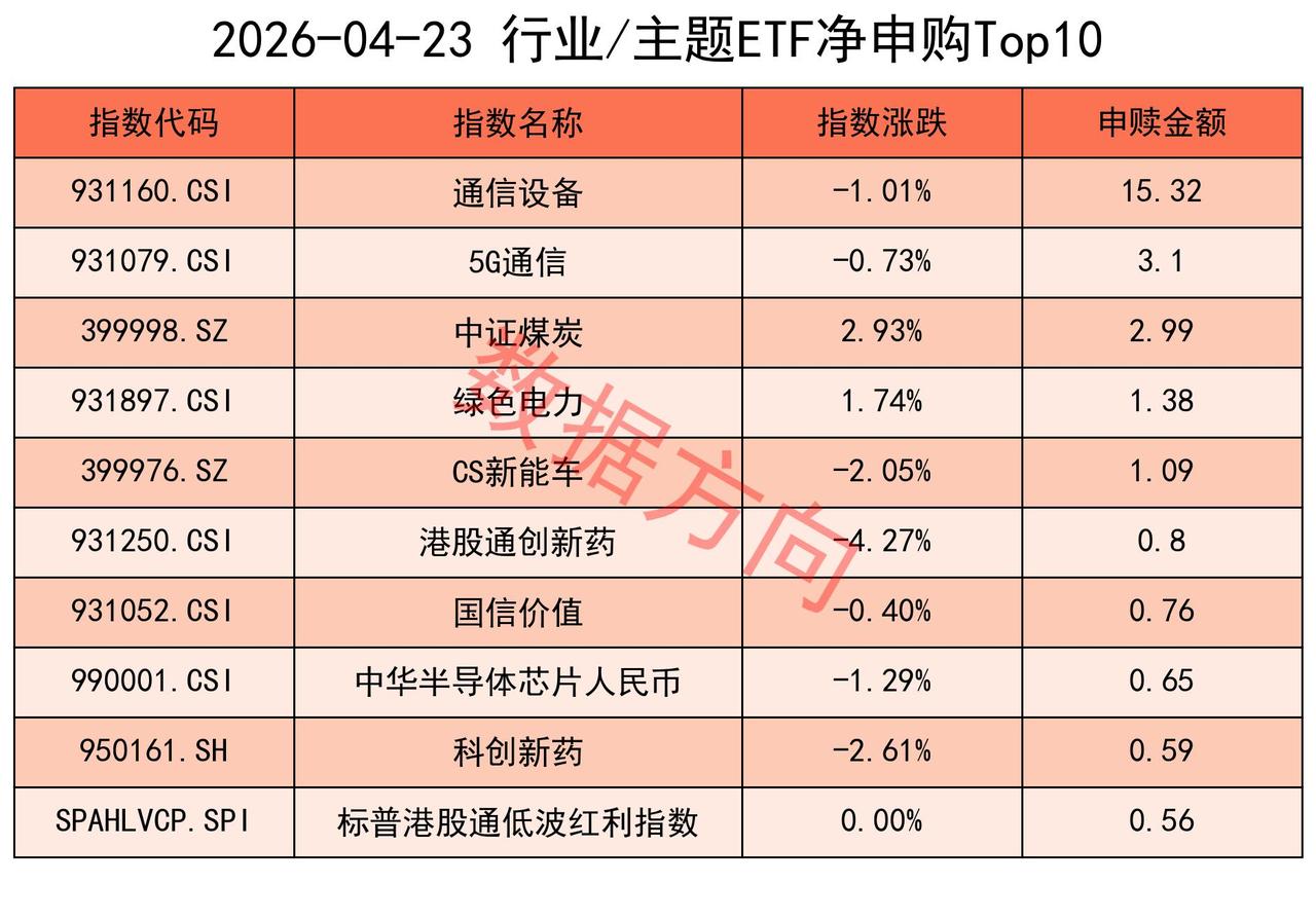 通信设备指数(15.32亿)、5G通信指数(3.1亿),一起进入申购榜。
