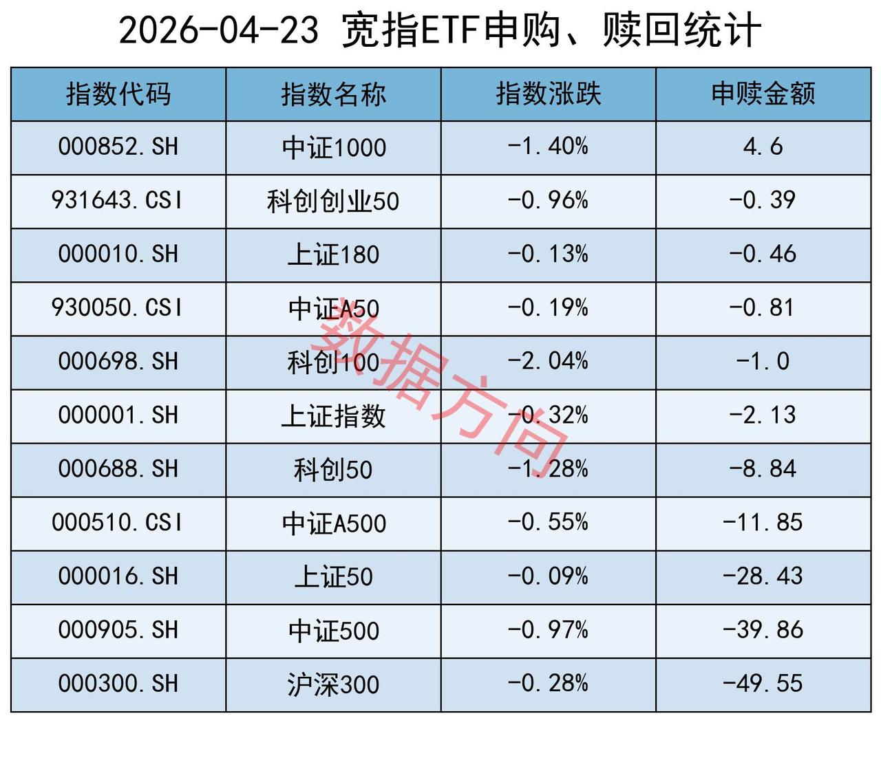 连续11天,每天净赎回近100亿 4月23日星期四,大盘高开低走、放量调整,油