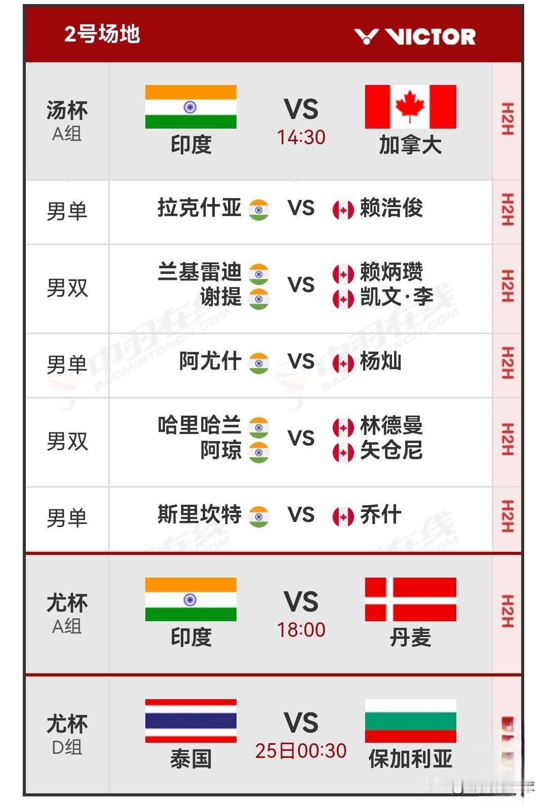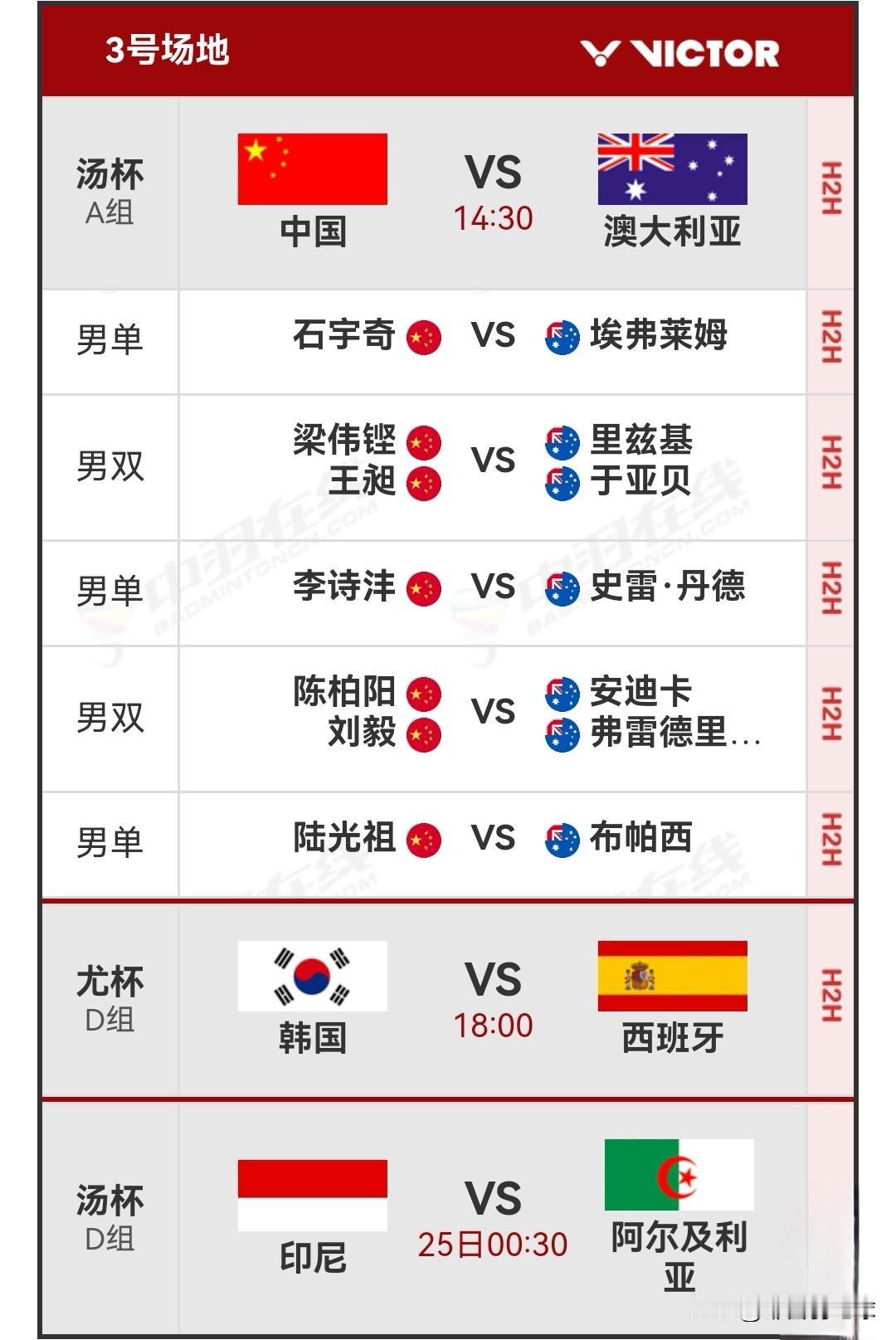 4月24日2026羽毛球汤尤杯首日赛程安排