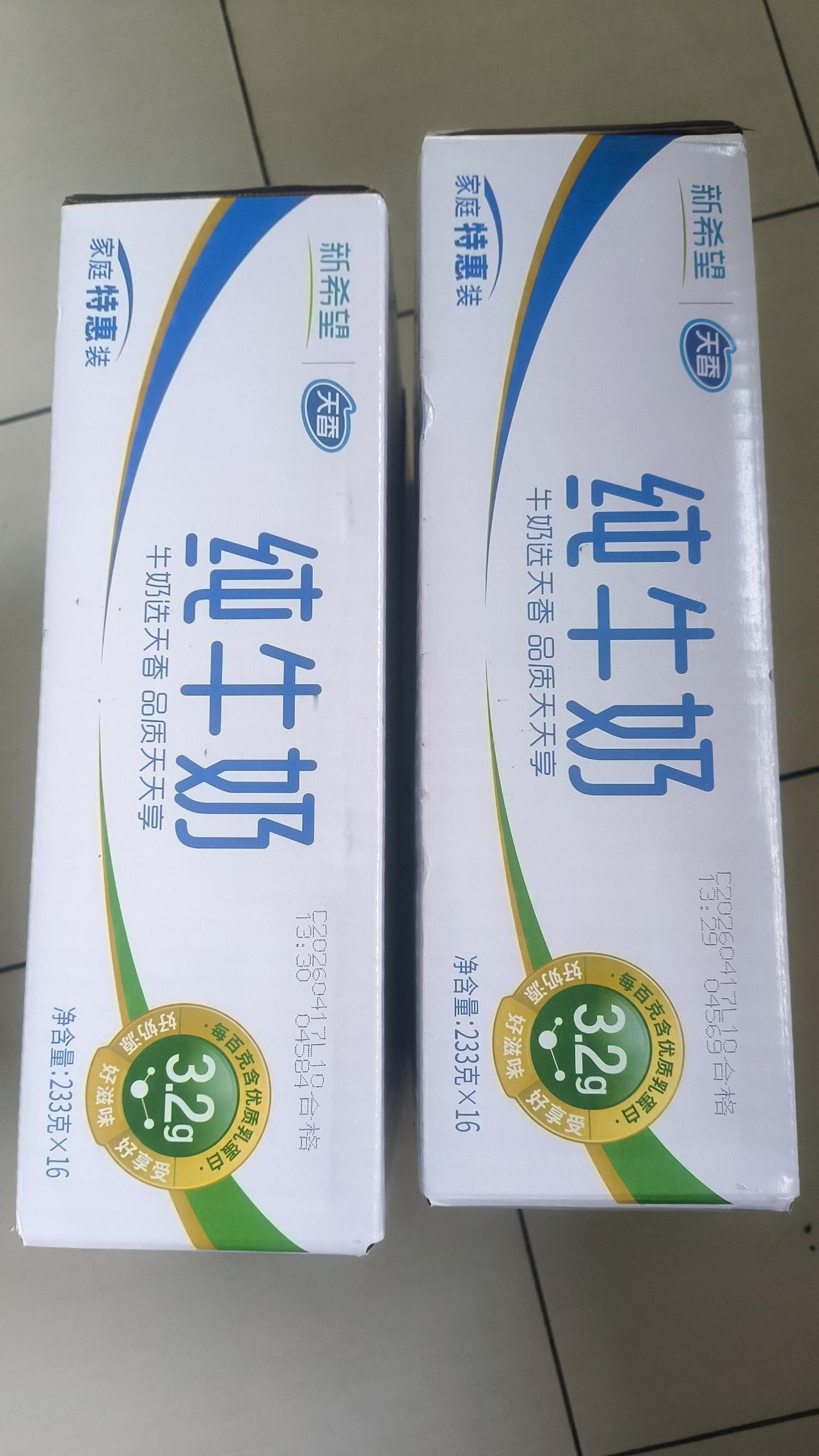 北门旁新开小超市搞活动,天香纯牛奶233ml×16袋,整箱仅22元,生产日期4月17日,日期特别新鲜。看着不错,我一下买了两箱!