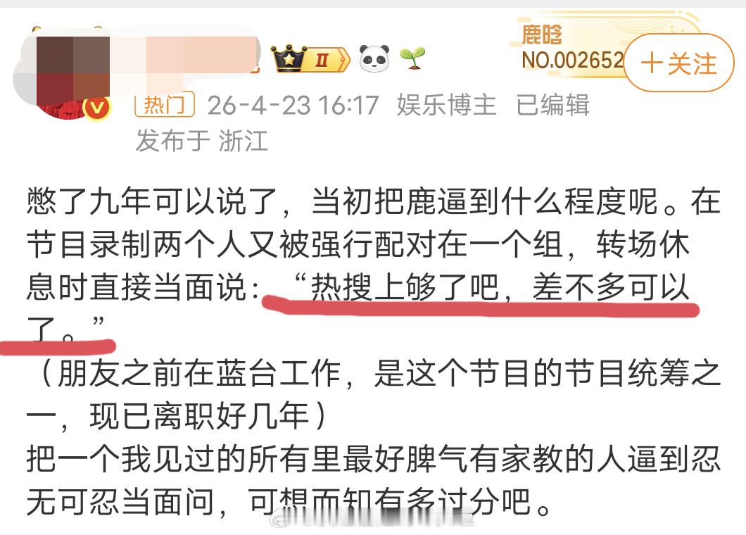 鹿晗粉丝关于跑男录制期间的爆料,可信度存疑,明星应该不会公开对线,还这么不留情面吧?如果是真的,工作人员文字爆料、录音、视频,早就满天飞了。。。