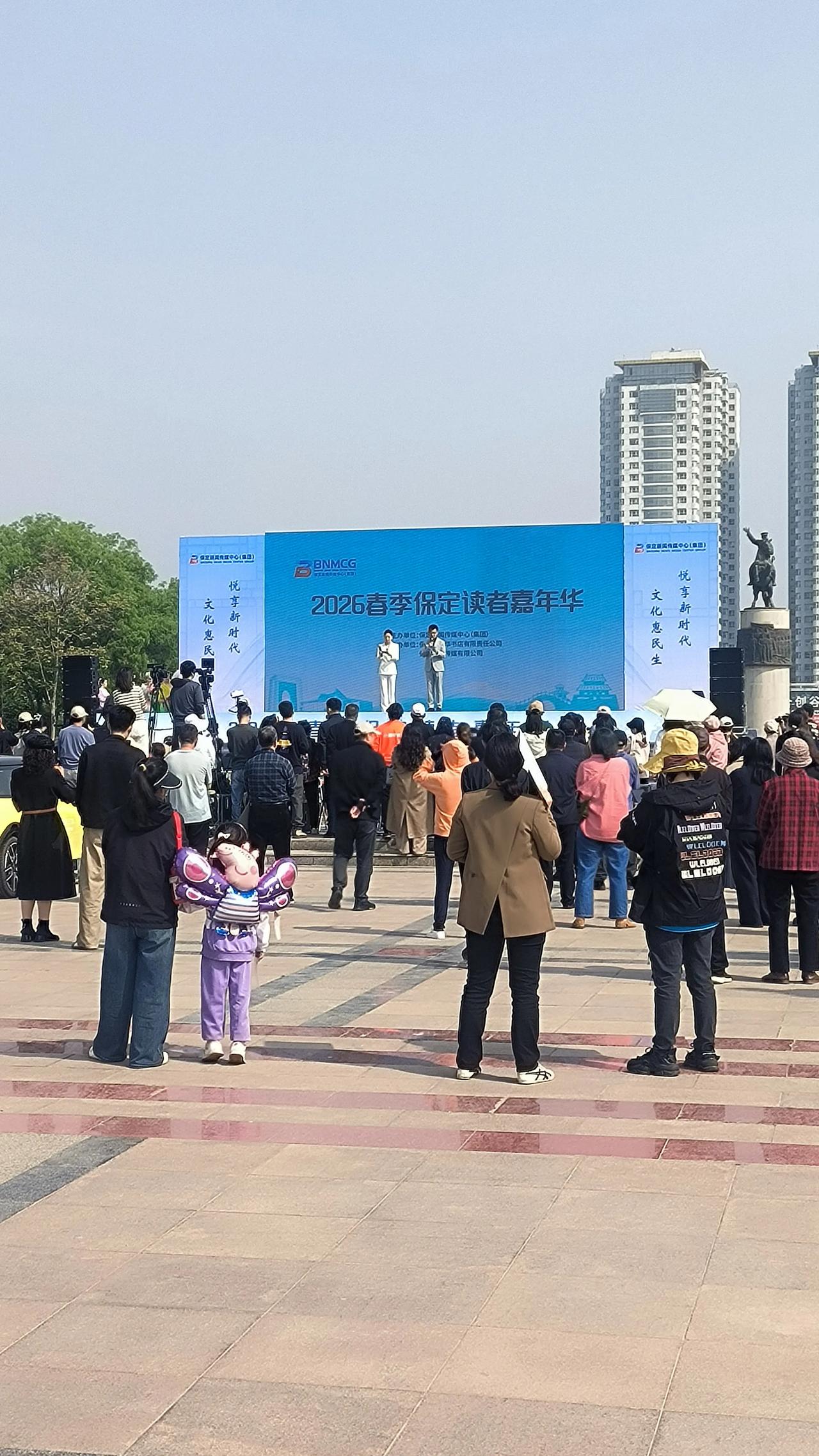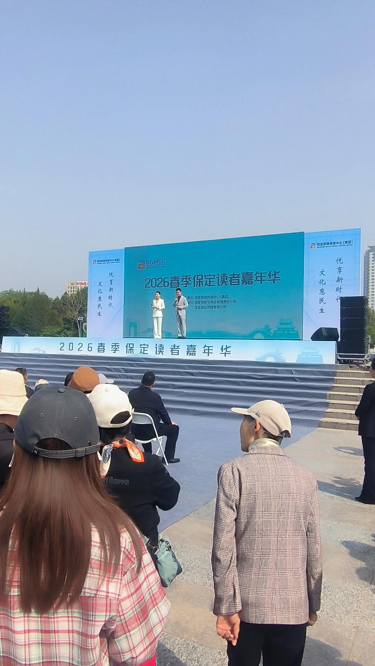 走到广场中心位置,恰逢2026首季保定读者嘉年华启幕仪式。由保定电视台主持人主持,各位领导依次发言,仪式结束后,精彩的文艺汇演轮番上演。