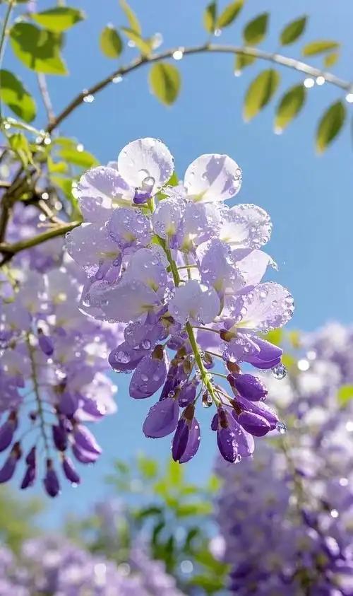 西江月 紫藤 串紫垂珠悬露, 风摇披浪浮纱。 翠云叠处隐仙家。 谁泼丹青如画。