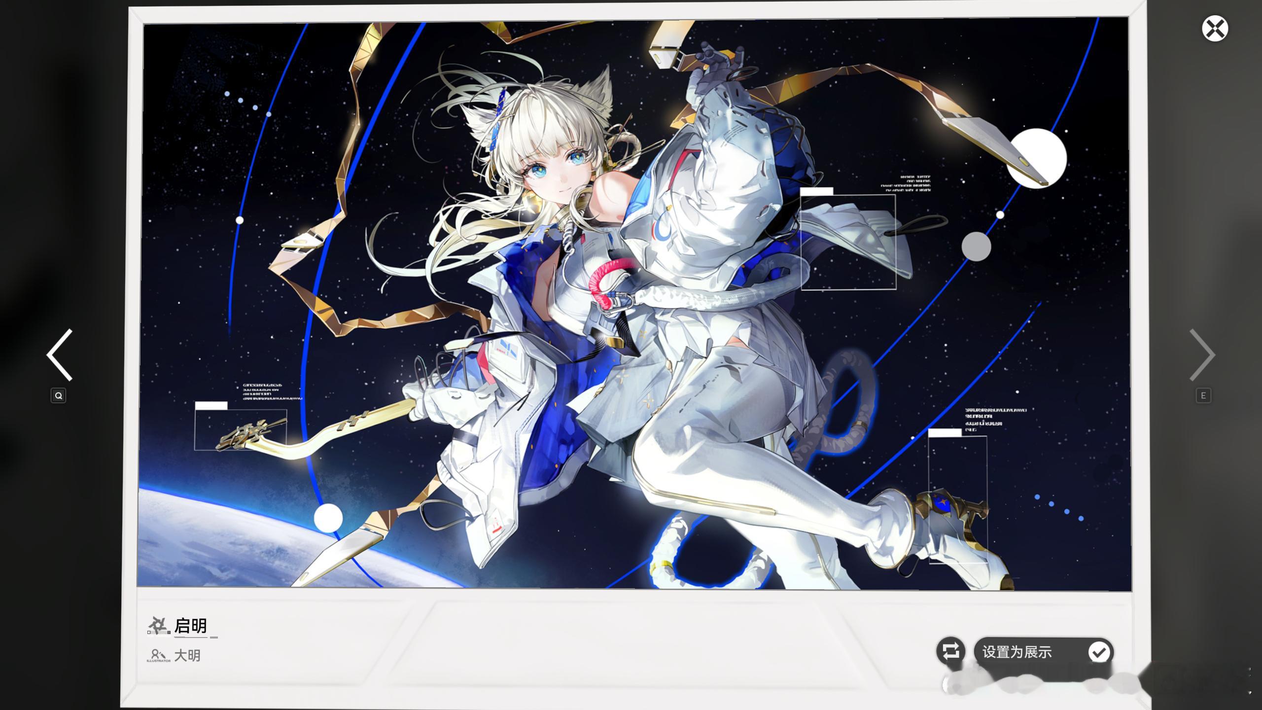 终末地这是要上天啊专属干员留影启明·佩丽卡的航天主题新形象,你觉得怎么样?!她的设计主色调采用白+深空蓝+鎏金三色,白色基底致敬中国航天服的经典配色,深空蓝呼应无垠宇宙的探索主题,鎏金细节则对应“镌宇铭星”的主题内核,与角色原本的浅金色毛发、冰蓝色眼眸形成完美适配,整体视觉既贴合航天的严谨气质,又保留了角色本身的灵动与温柔,整体造型为失重状态下的深空漫步姿态,完整还原了航天员出舱活动的经典场景;服饰设计深度参考中国航天服的专业结构,在保留佩丽卡标志性角色特征的基础上,加入了航天通讯管线、专业操作手套、星空主题机能面料等核心航天元素,这一波我直接我给她打分打满分!