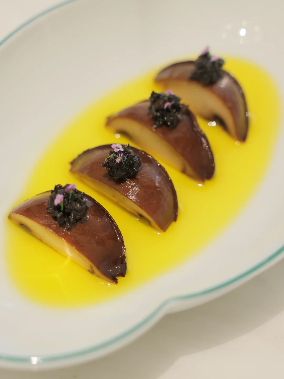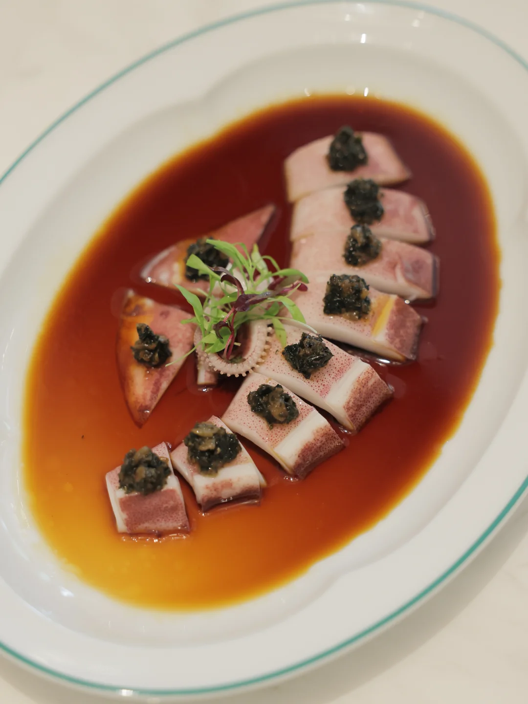 🦑紫苏酱配舰鱿有点像湖南的紫苏桃子姜;相比之下菜油卤鲍鱼更好吃,上面的梅干菜点缀是灵魂!