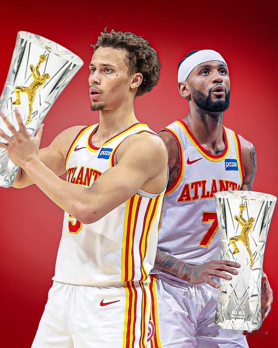 亚历山大-沃克当选进步最快球员,拿到了66张第一选票,老鹰也连续两个赛季拥有了进