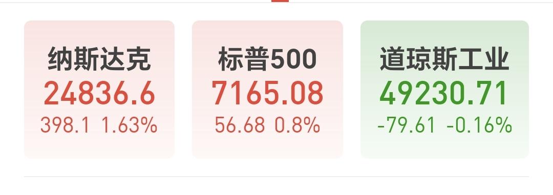 美股市场昨天晚上涨跌不一,纳斯达克指数上涨了1.63%,标普指数上涨了0.80%,道琼斯指数下跌了0.16%,涨跌幅度也都不大。