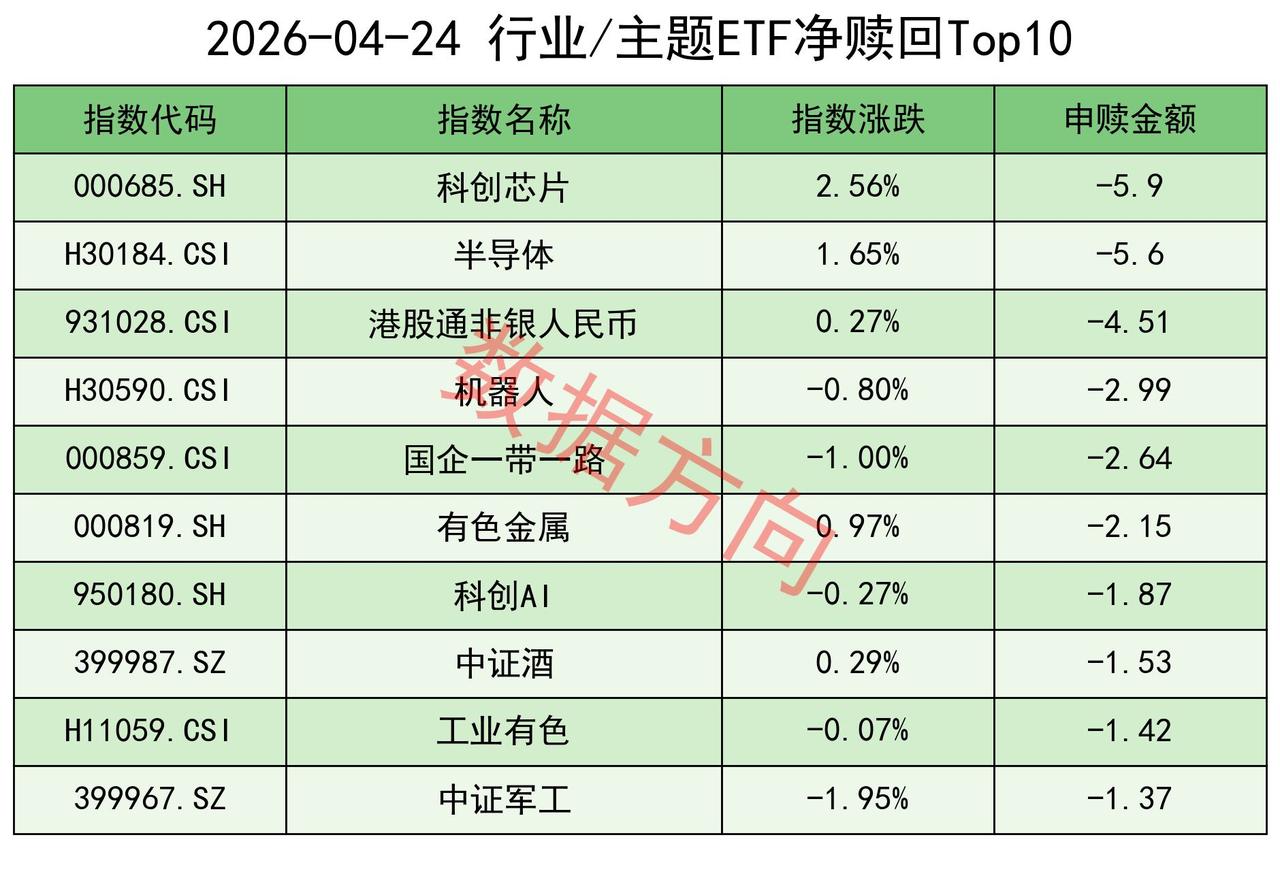 如果一直这么赎回,需要保持敬畏 4月24日星期五,大盘弱势调整,半导体产业链、