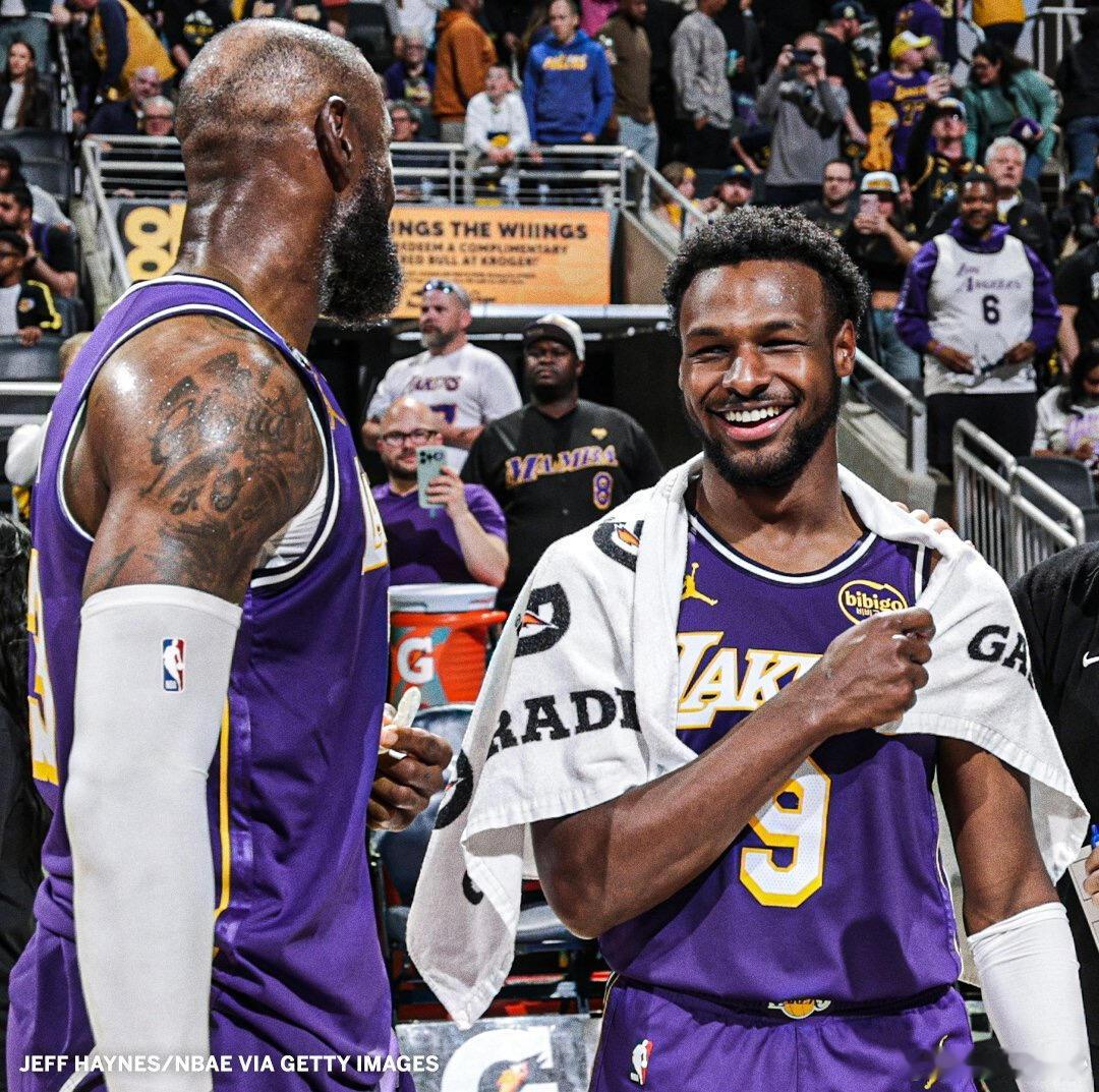 NBA季后赛历史首次父子连线黑粉:这哪是NBA啊,这是詹BA啊!两父子联手连得8分,还怎么玩啊!!!——NBA季后赛历史首次父子连线,詹姆斯给儿子的两次助攻,一个是挡拆三分,一个是空接反篮,打得火箭球迷直呼离谱!!詹姆斯送布朗尼空接反篮打进