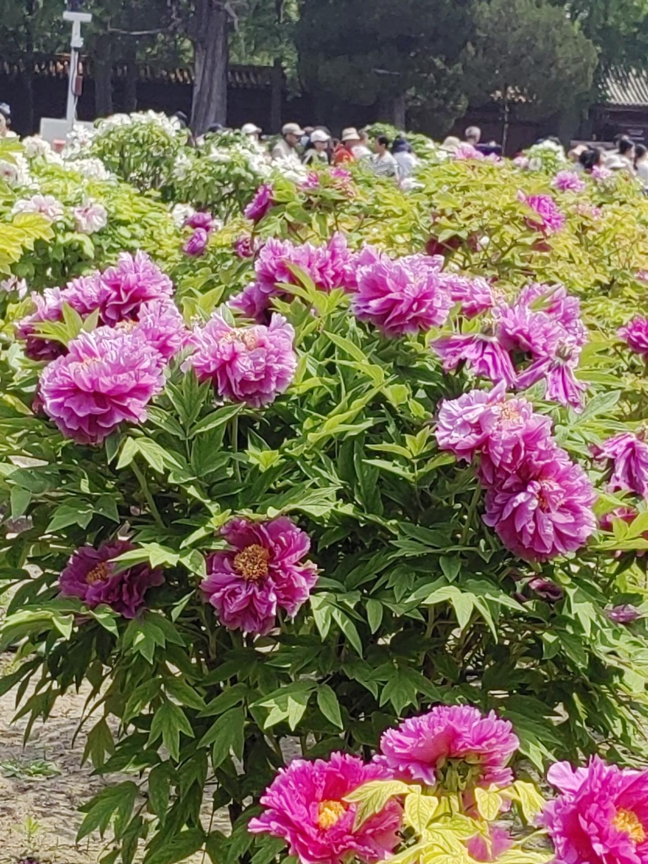 一棵棵牡丹花婀娜多姿,一朵朵牡丹花雍容华贵。真是唯有牡丹真国色,花开时节动京城。颜色太多了,几百多品种,几万棵牡丹花,看不过来了。真正知道了啥叫看花眼了,没法形容,真美啊。