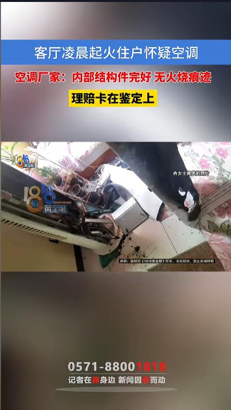信息来源:《客厅凌晨起火住户怀疑空调,空调厂家:内部结构件完好 无火烧痕迹,理赔卡在鉴定上》1818黄金眼