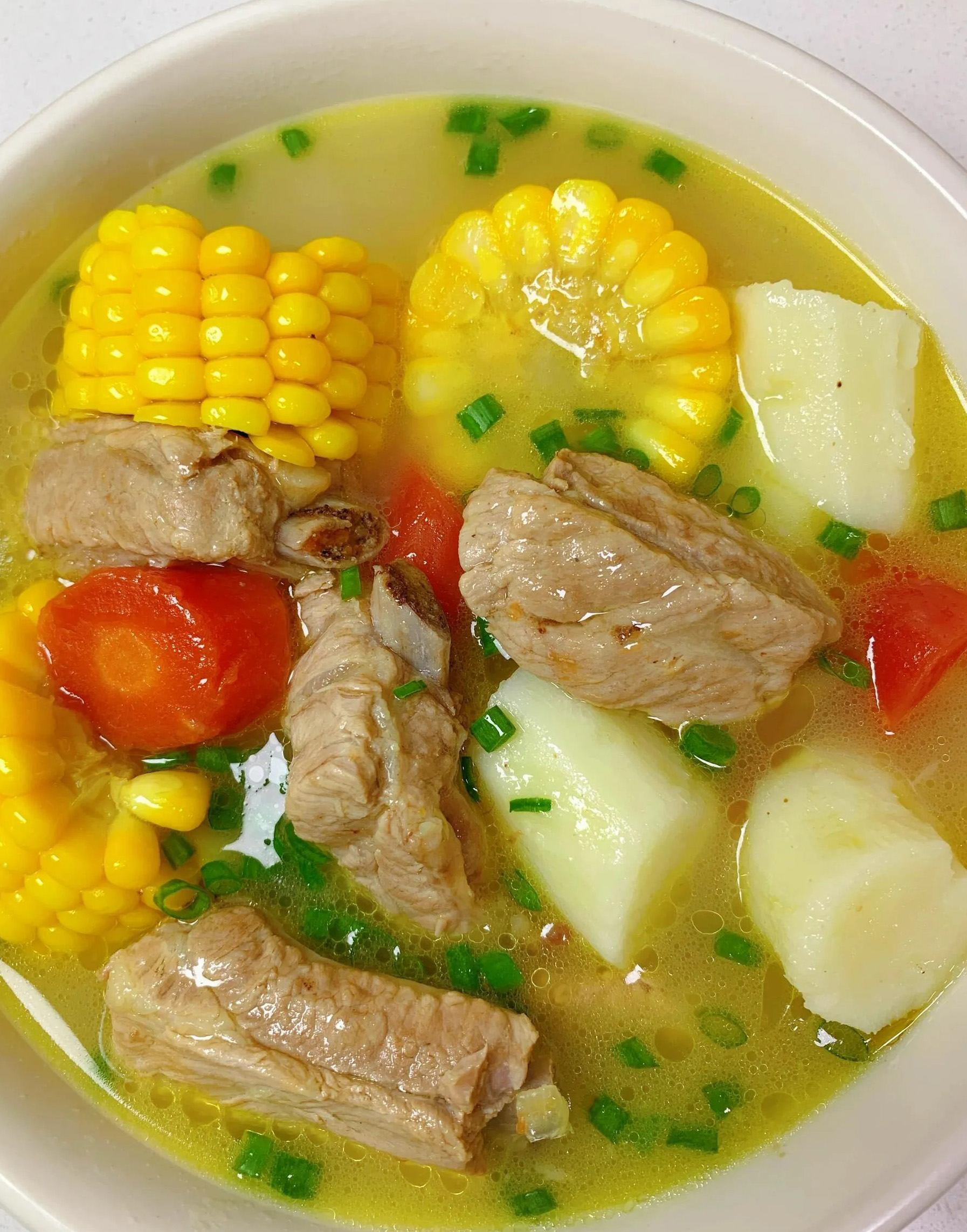 👉 做法:排骨焯水;玉米切段,山药去皮切块;所有材料加姜片、足量水,炖40分钟;加盐、枸杞、葱花。