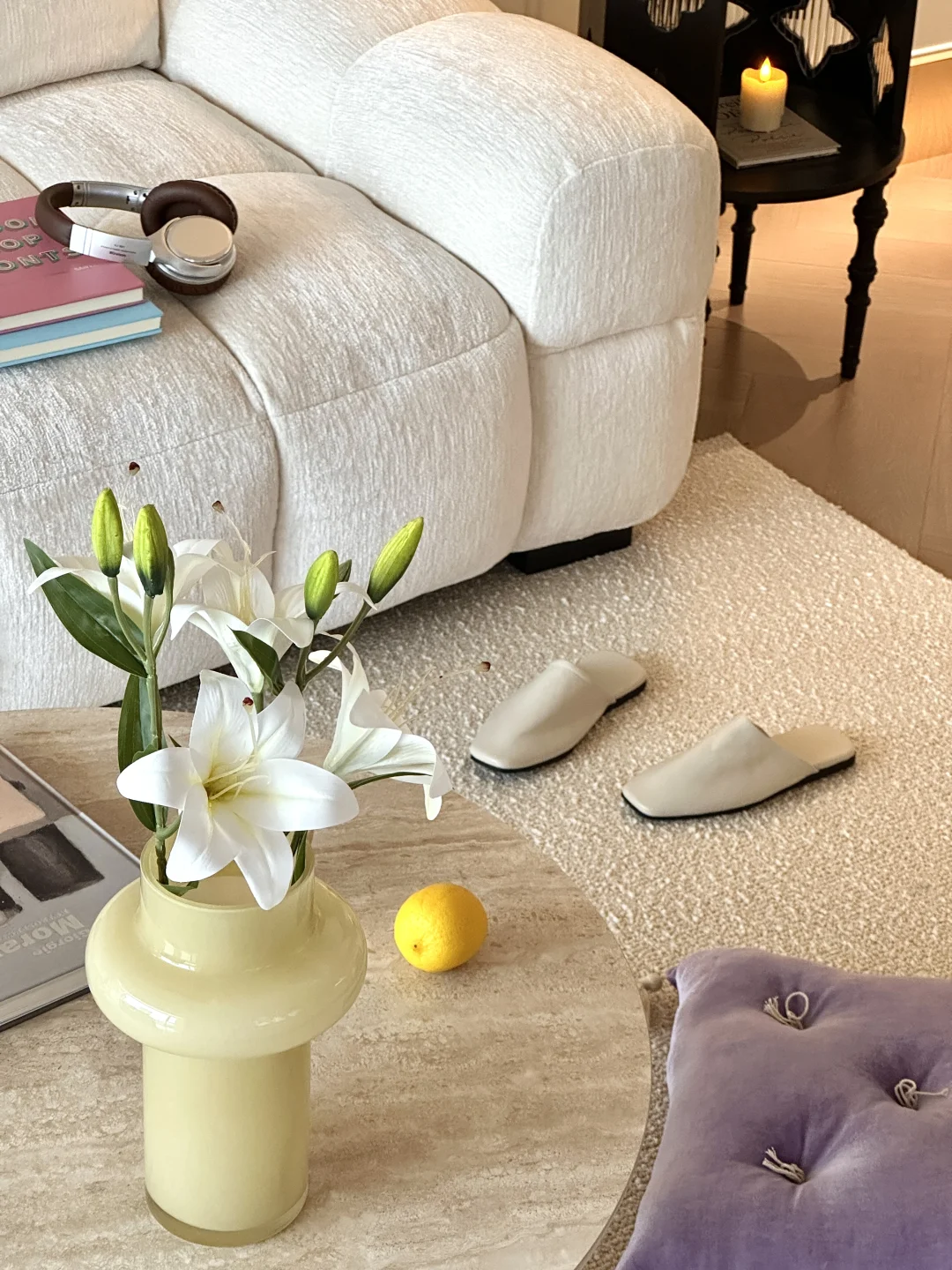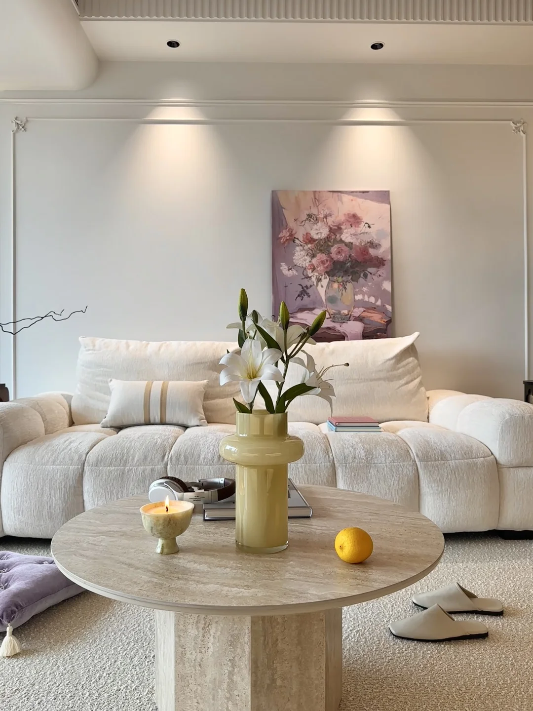 沙发+地毯+简约小茶几+氛围台灯