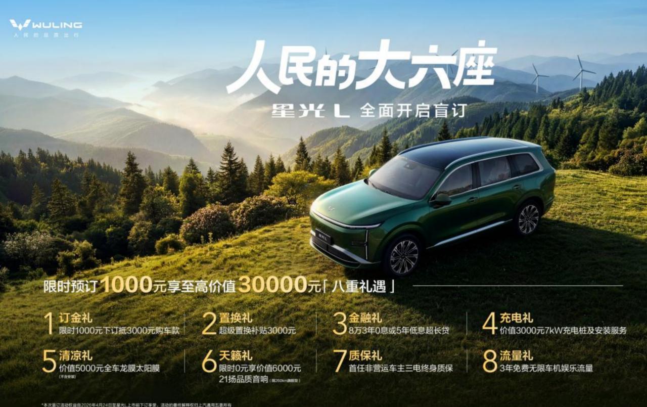4月24日,五菱旗下「长续航大六座SUV」星光L在北京车展正式首发亮相,并同步开启全面盲订。