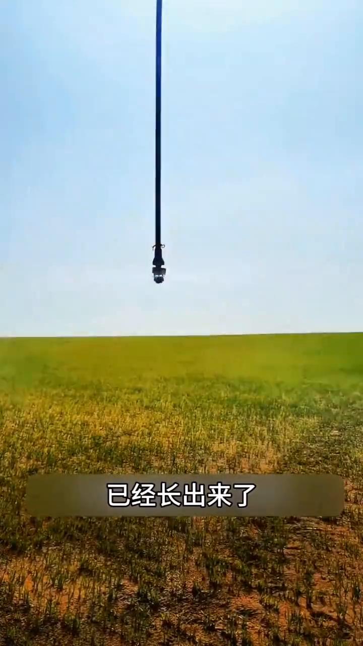 这里是塔克拉玛干沙漠,也是7.38万亩新推平的土地。一边是荒漠,寸草不生,一边是良田绿意盎然。前几天还在撒羊粪给它施肥,如今已经长出来了绿油油的小苗。这是在沙漠里种下来的秋小麦,目前绿油油的小苗已经长出来了,这也预示着祖国的大粮仓正在成长。