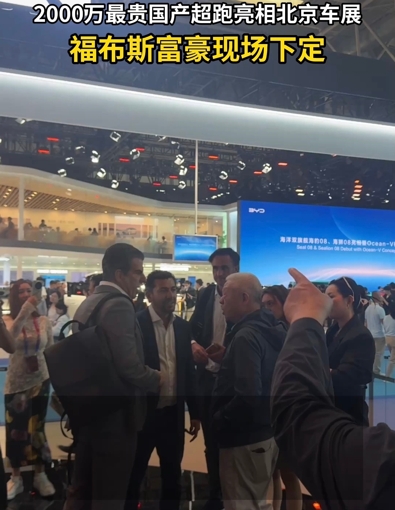 国际富豪车展买走2000万超跑 这次车展,比亚迪展台是真的火,也是挺豪横的,包下了整个馆,看到了车企同行串门,也有不少海外的知名人士驻足观看。
