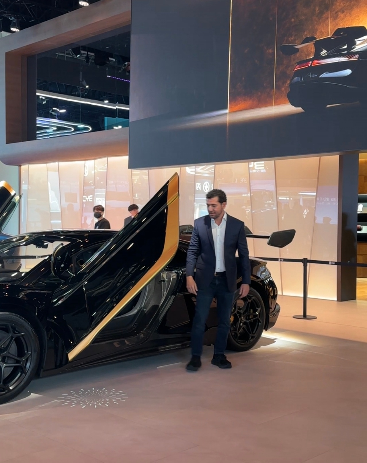 仰望这边,两款新车直接把老外看愣了,U9X,极速496km/h,这数字什么概念?很多超跑连尾灯都看不到。最绝的是车漆。微米级金粉融进非遗大漆,叫“破晓时刻”,光影温润得像老钱车库里的定制货。全球限量30台,当场就有车主签约。一个巴西赛车手激动得不行,说提车时要在机盖上给所有工程师签名,这敬意是真的。