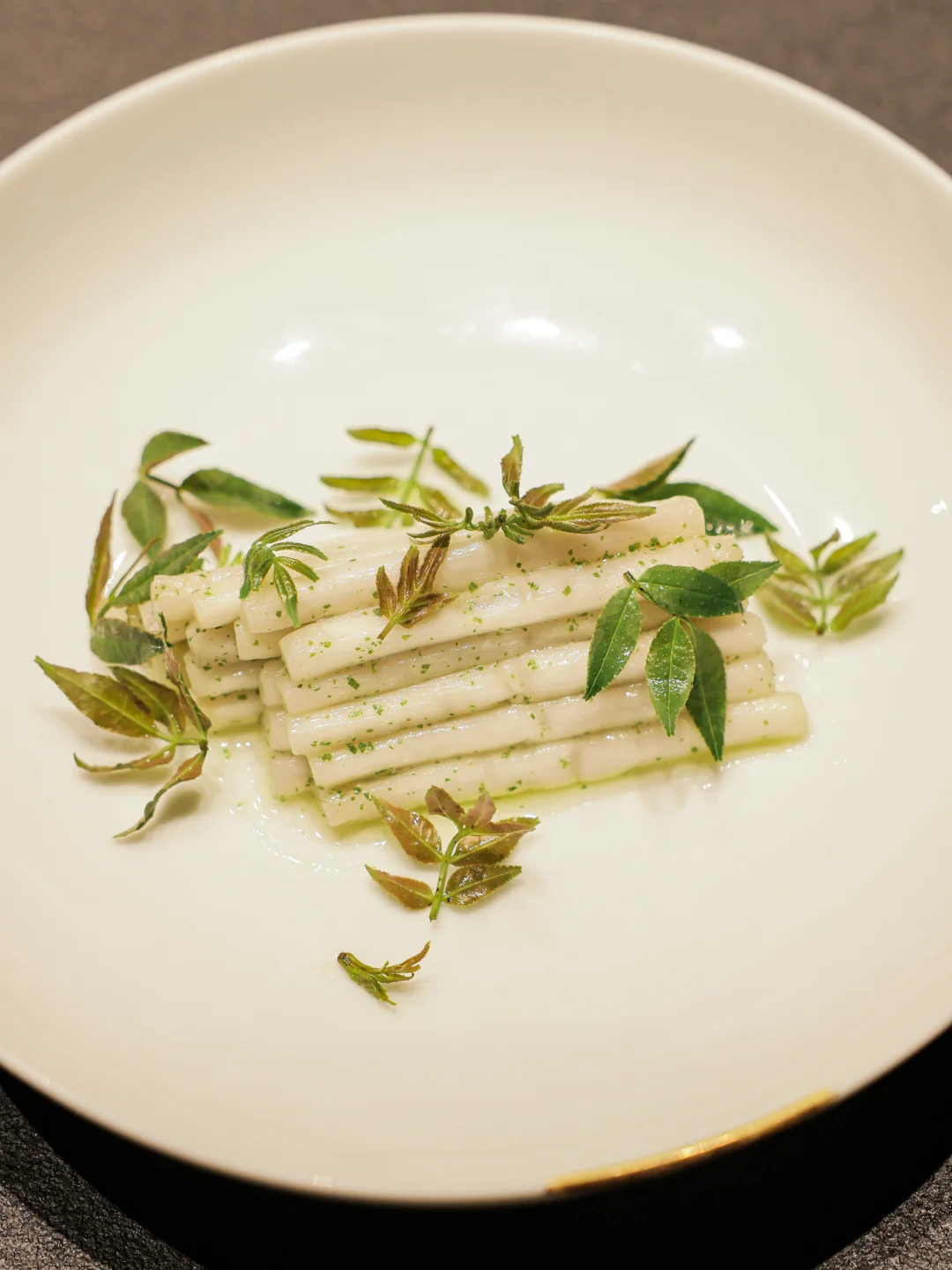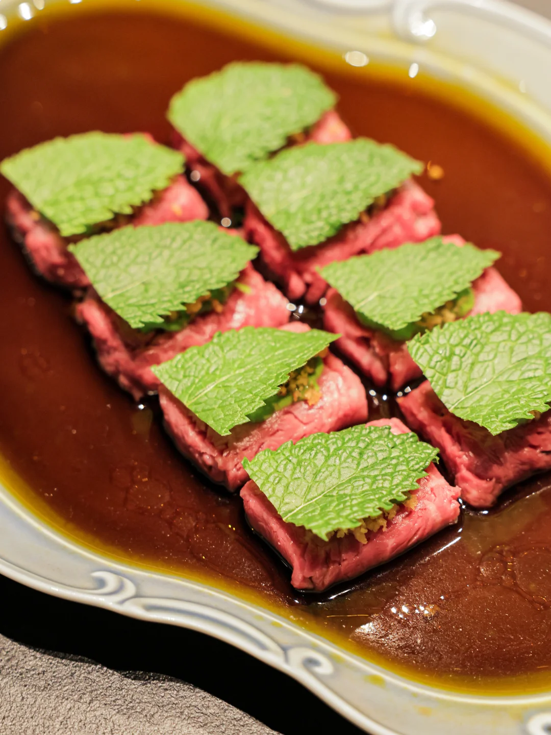 这次时令前菜都很好吃,[椿芽豆腐]包在嘴里的留香许久,[薄荷薄盐牛里脊]咬开的层次很丰富,薄荷和凤梨包着牛肉吃太妙了!