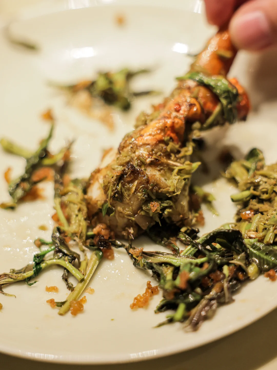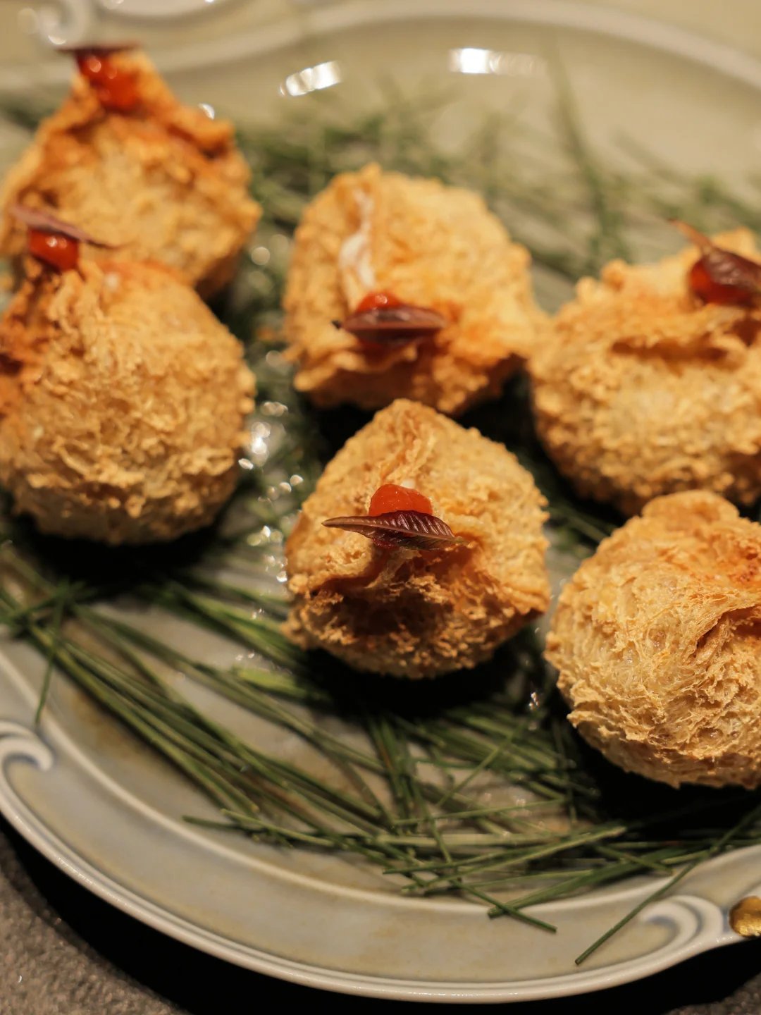 蟹肉也很嫩啊,完全不像上次吃到的帝王蟹那么糟糕,而且香椿味太浓郁了!里面还搭配了切碎的胸口油碎,我的天,这个搭配真的绝了,用剩下的香椿混合胸口油碎,包着这个饼皮一起吃,一吃一个不吱声!!!