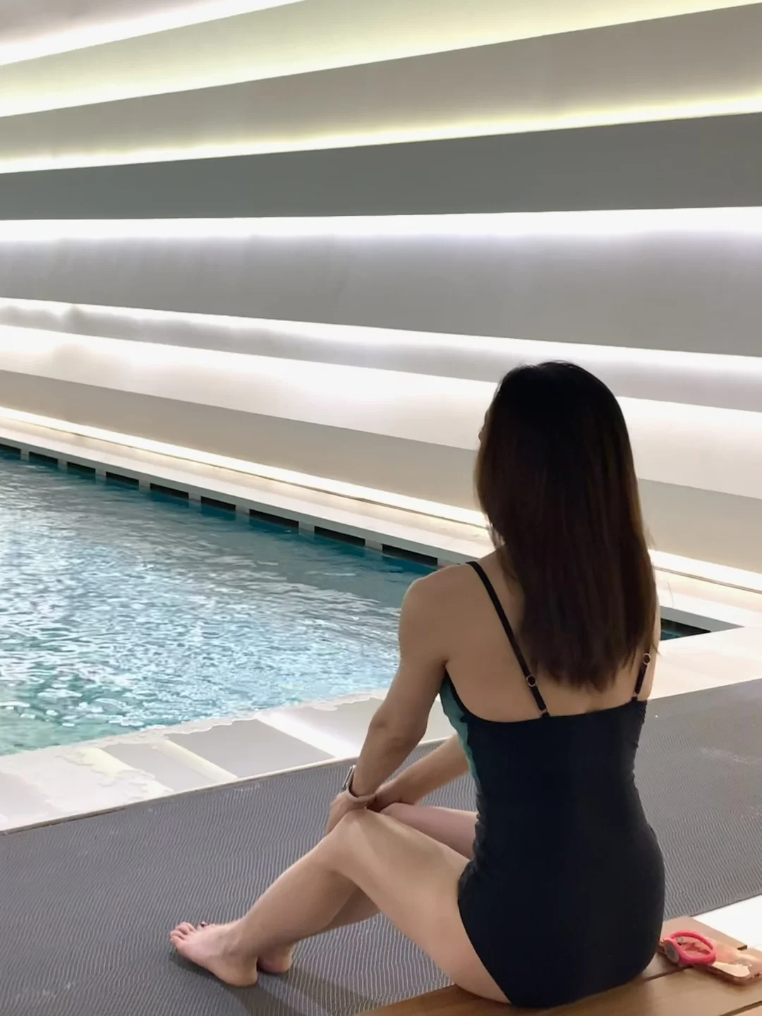 除了健身外也在努力学游泳