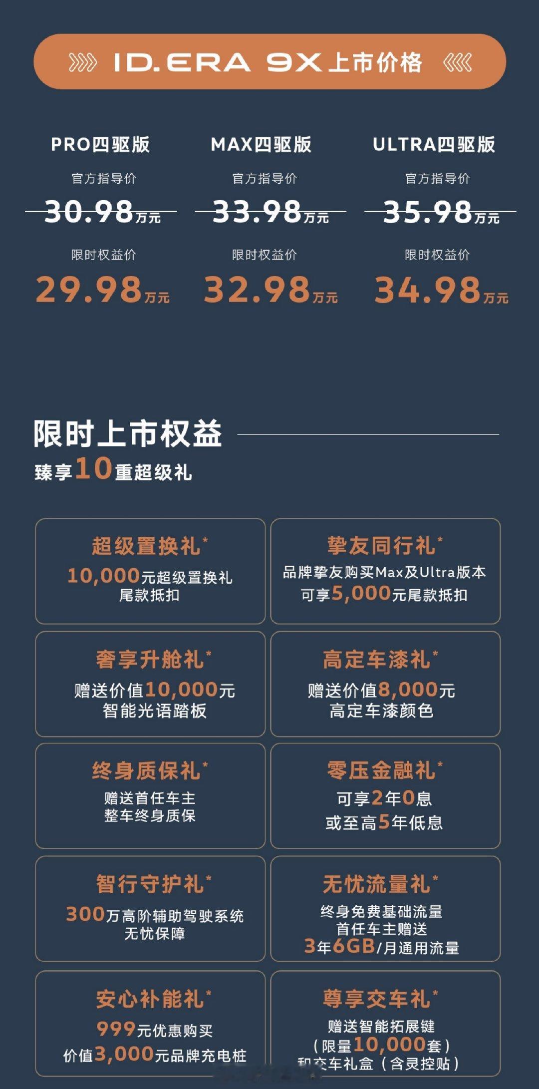 大众ID. ERA 9X正式上市 29.98万起,限时可享多重权益。共推出三个配