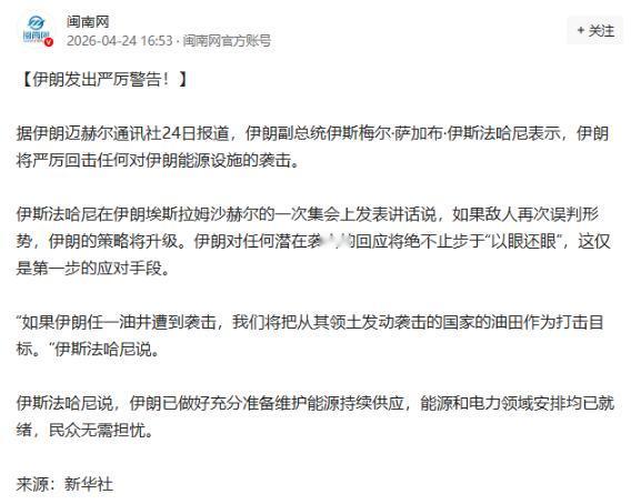 伊斯法哈尼说,要是伊朗真被袭击了,那回应可不止“以眼还眼”这么简单,这顶多算个开头,后面还有更厉害的招等着呢,就是要让那些挑衅者知道,伊朗可不是好惹的,不是能随便欺负的软柿子。
