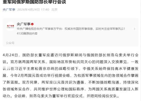 4月24号俄罗斯防长别洛乌索夫放话了,说在现在这不断变化的军事政治局势下,俄罗斯和中国的双边军事合作那是相当迫切,这话一出来,可引起不少人关注。