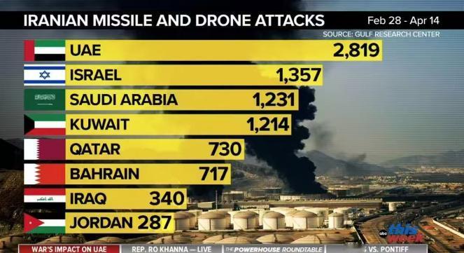 伊朗炸了40天,怪不得以色列根本不害怕。伊朗发射的8695枚导弹和无人机,以色列只挨了六分之一。而且,就算在中东地区,伊朗打击的导弹和无人机,以色列也仅排在第二名!