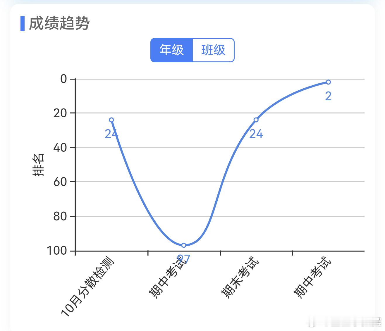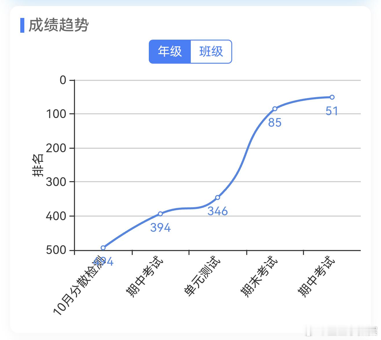 除了数学物理,另外几门历次考试的排名也很有趣。