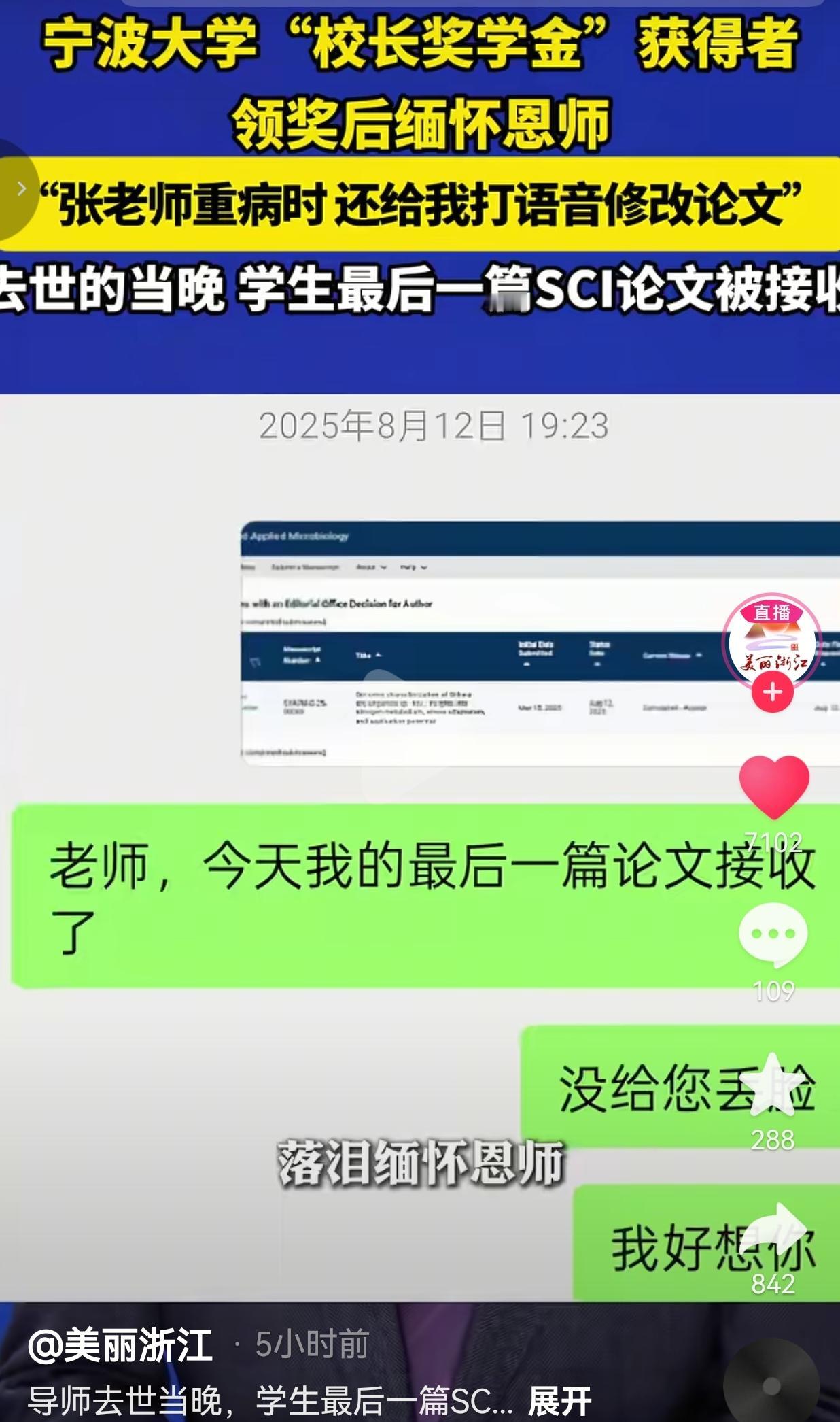 导师离世当晚,学生论文被接收,学生哽咽地对恩师说:老师,我没给您丢脸