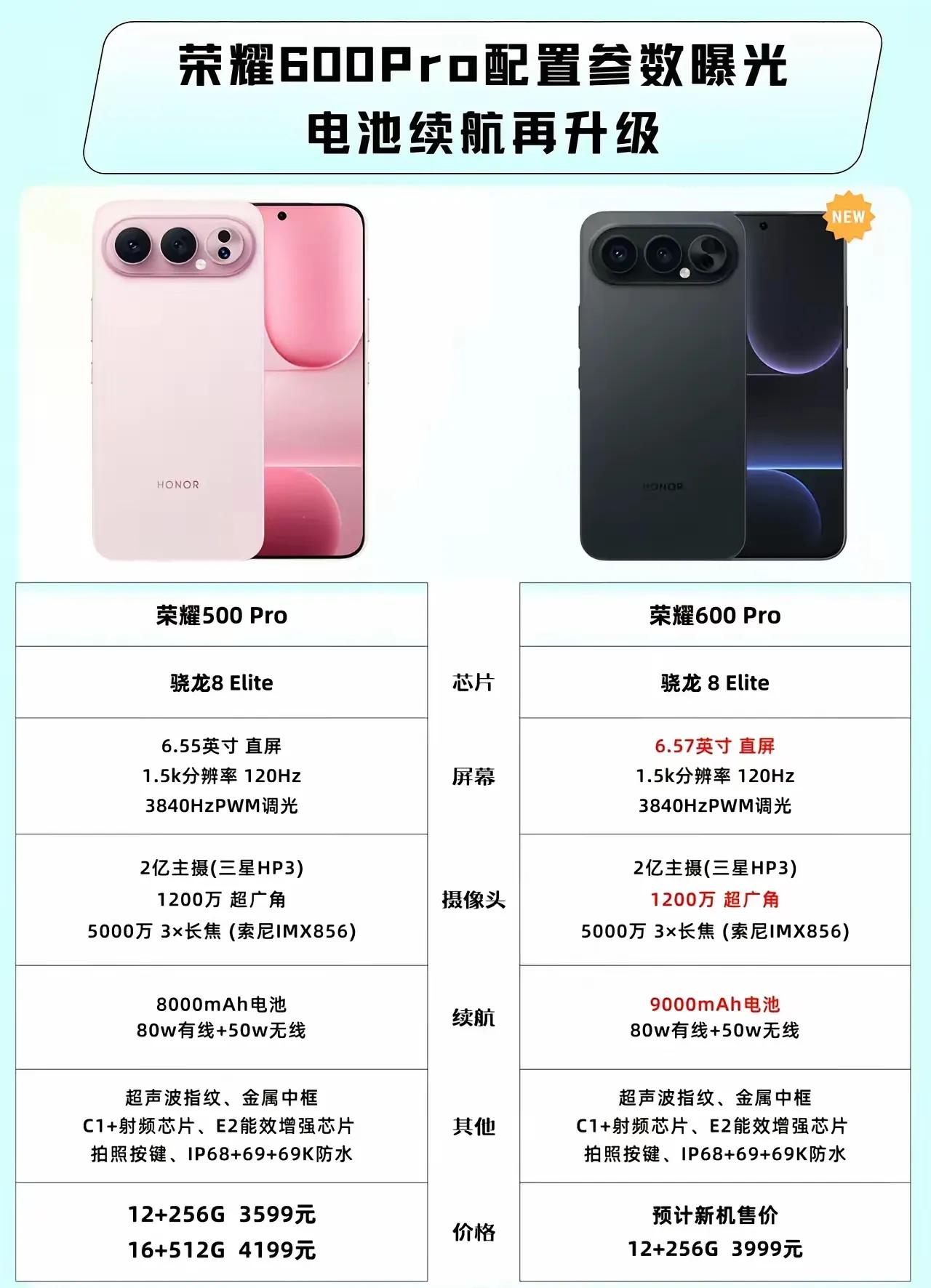 荣耀600pro配置曝光,可以说简直不要太能打了!荣耀600 Pro的完整配置终于被扒出来了,对比上一代500 Pro可以说是全方位提升,完全没有挤牙膏。