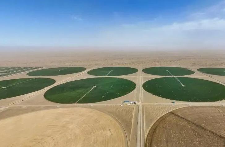 不光这里,沙漠南缘的昆玉市,8200余亩冬小麦也在拔节抽穗,380米长的指针式喷灌机,转出25个巨大的绿色“同心圆”,远远望去,就像给沙漠戴上了绿镯子。