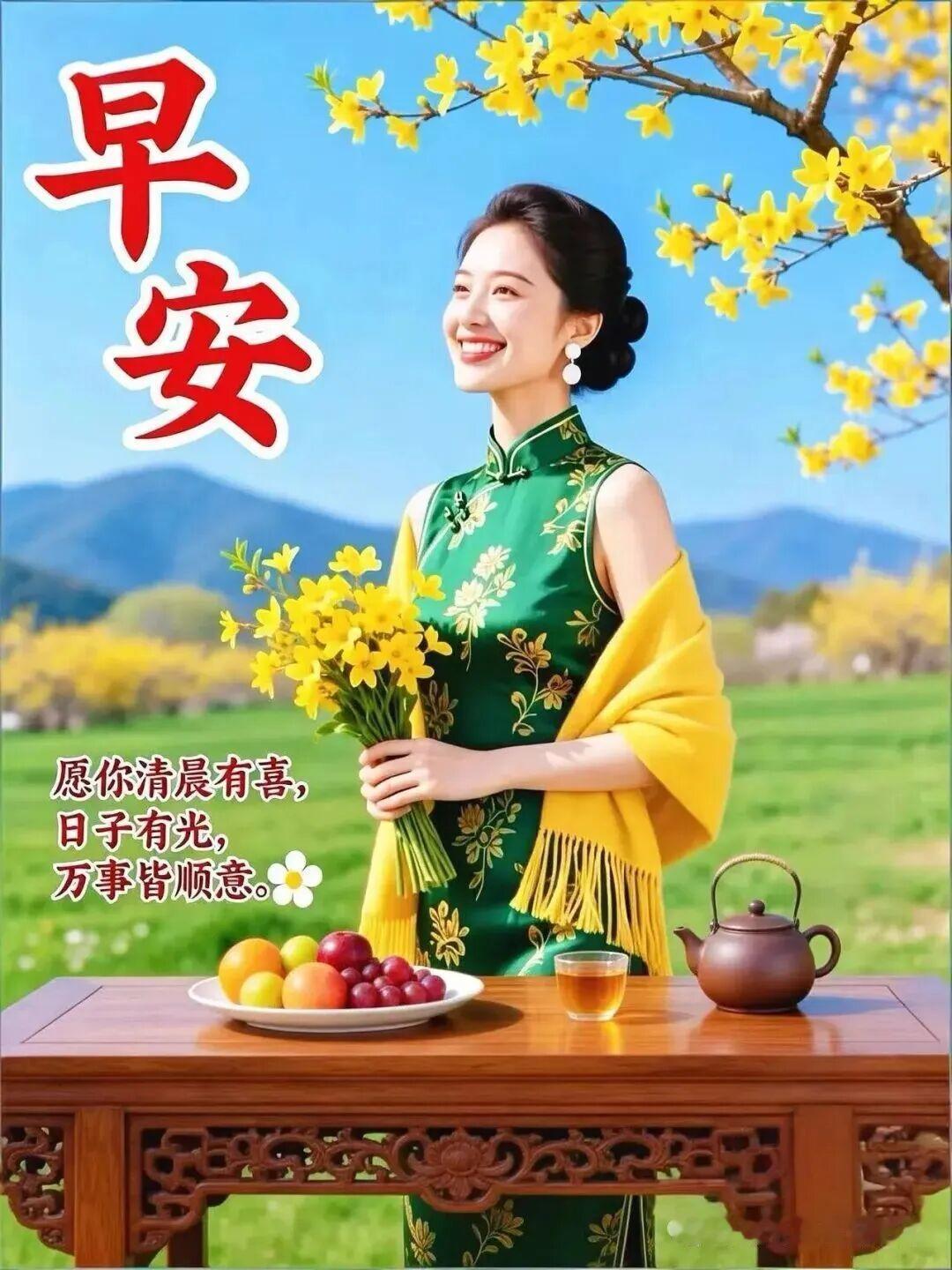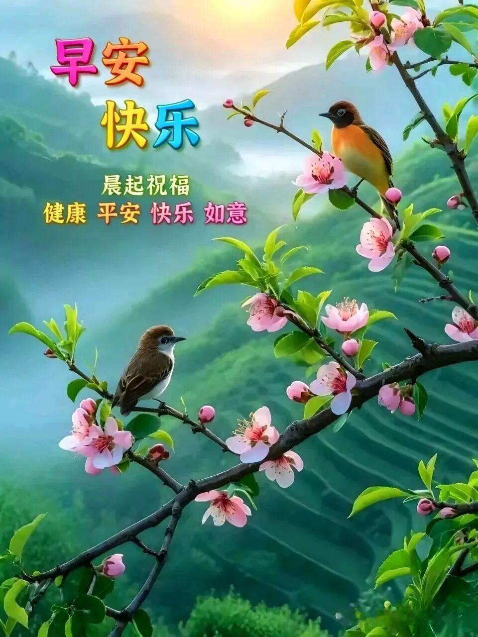早安,美好的一天!春风拂面,湖水荡漾,愿美好如影随形,幸运一路相伴。周末快乐,喜乐安康,顺心如意!🌹🍎
