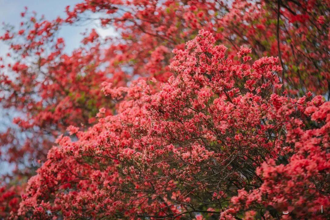 这里的映山红,就像江南的姑娘,红而不艳,红而不淡,红绿搭配得刚刚好,增之一分则太艳,减之一分则太淡。