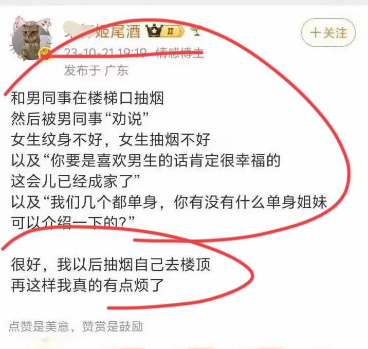 这个女的劝阻公共场所吸烟的行为,明显是越界了;
