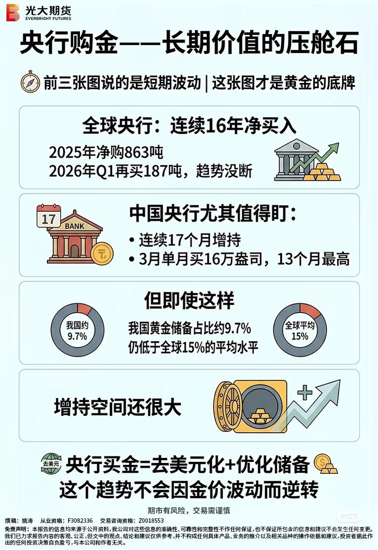 4️⃣ 央行购金:各国央行都在疯狂囤金,这是金价的“铁底”,长期稳得住。