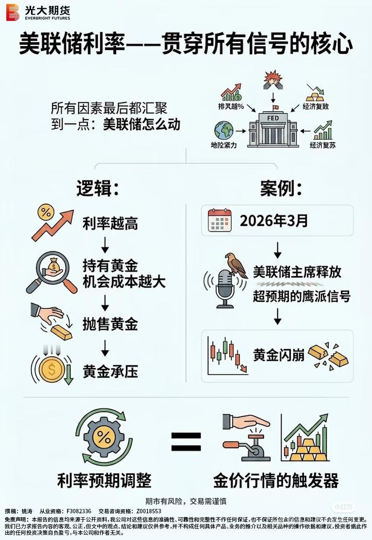 2️⃣ 美联储利率:利率涨,黄金跌;利率跌,黄金涨,这是核心中的核心。