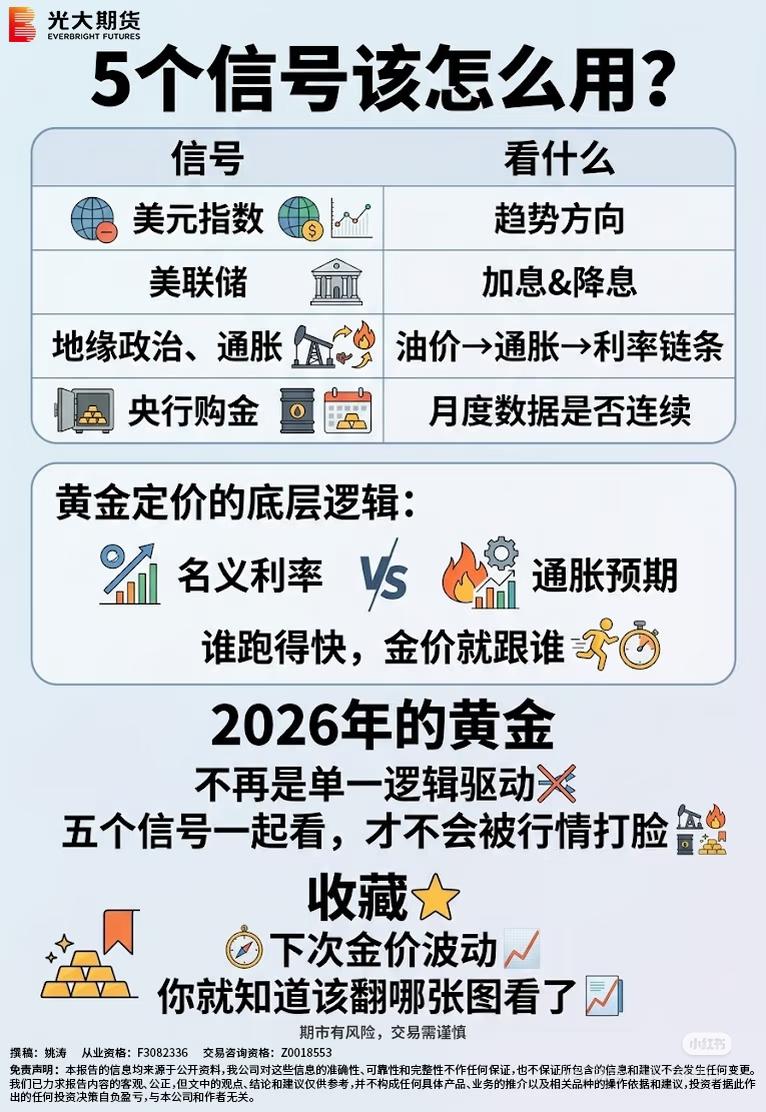 今天用大白话跟你说清楚,黄金涨跌,全看这5个信号: