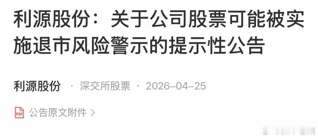 9. st利源:工业金属加工企业连续五年亏损,2025年预亏2.30亿元,两次发布退市风险警示,退市概率极大。