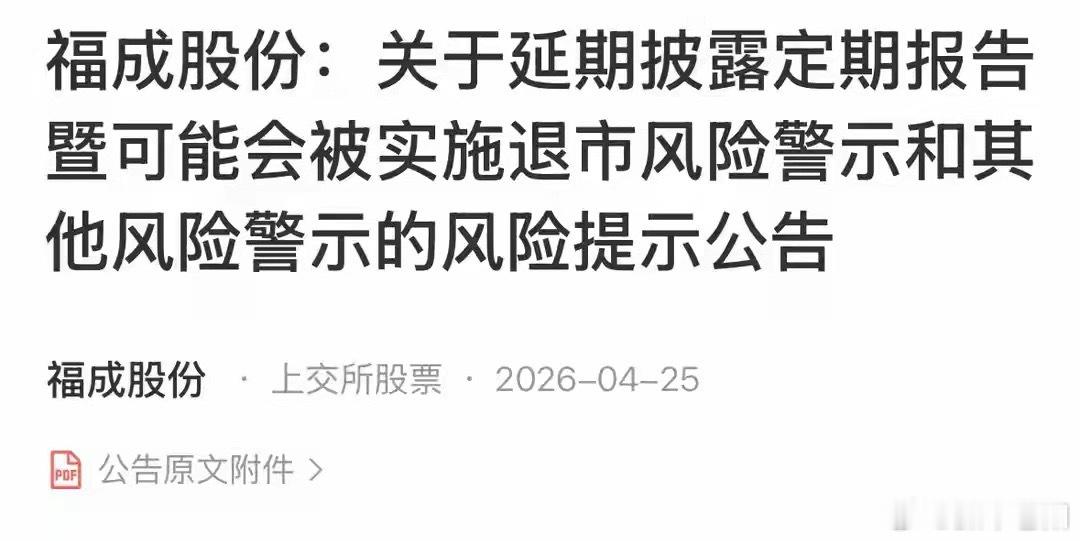 8. 福成股份:养殖行业企业财报遭“双重否定”——2025年财报被出具无法表示意见,内控报告被出具否定意见,触发退市风险与其他风险双重警示,提前发布风险提示。