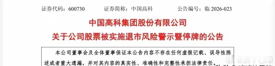 5. 中国高科:股价四个月近乎腰斩,从15.91元跌至8.61元,年报净利亏1.263亿元,营收仅7604万元,触发退市风险警示被ST。