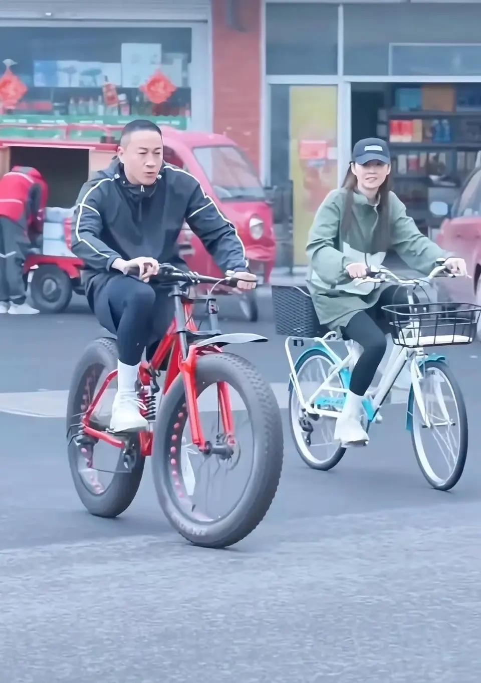 近期,何润东和老婆林姵希骑脚踏车出行,一起去买早餐被偶遇的画面。 何润东骑的自